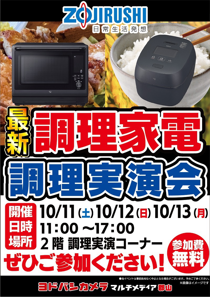 / 象印 最新調理家電実演会開催📣 \ オーブンレンジ EVERINO「ES-LA30」 圧力IH炊飯ジャー「NX-AA10」 を使った実演イベントです✨ どちらもご試食いただけます👍 ぜひお越しください💁 🗓10/11(土)~10/13(月・祝) 🕙11:00~17:00 📍2階 調理実演コーナー 🏬