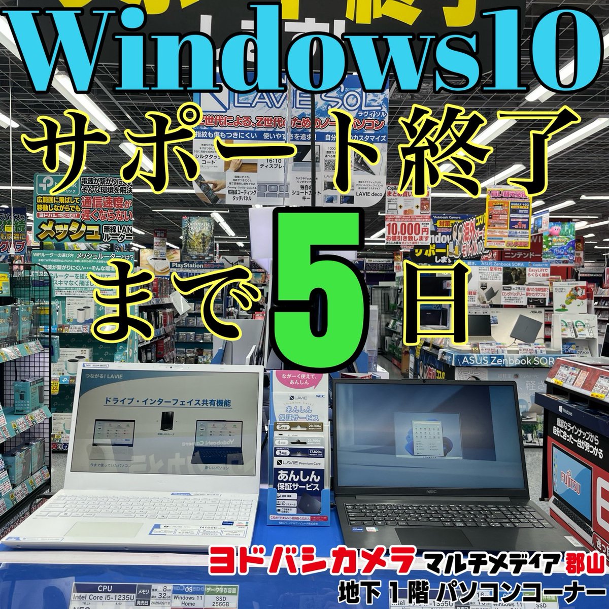 【Windows10サポート終了まで残り5日】 Windows10サポート終了まで 残り1週間を切りました📣 セキュリティ面でも安心の 最新PCへの買い替えを全力応援💪 安心・快適なパソコンをお求めの方 ぜひご相談ください❗️ オススメパソコンはこちら ➡