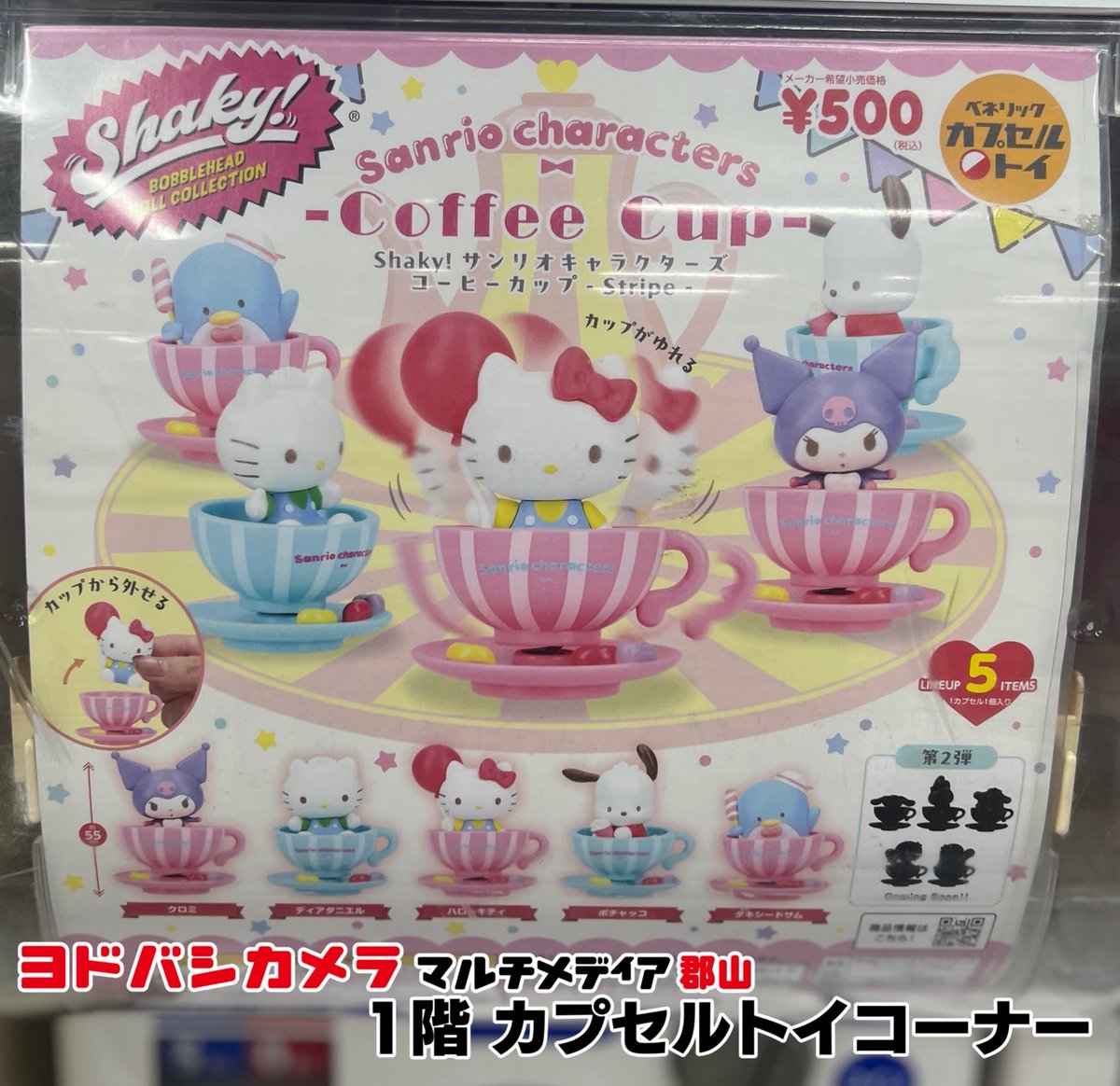 ヨドバシ郡山1階カプセルトイ販売情報‼️ ✅Shaky!サンリオキャラクターズ コーヒーカップ -Stripe- ✅サンリオキャラクターズ寿司-sushi-2 ✅サンリオキャラクターズ なりきりうさぎさんフィギュア ✅夏目友人帳 だるまるぬいぐるみ