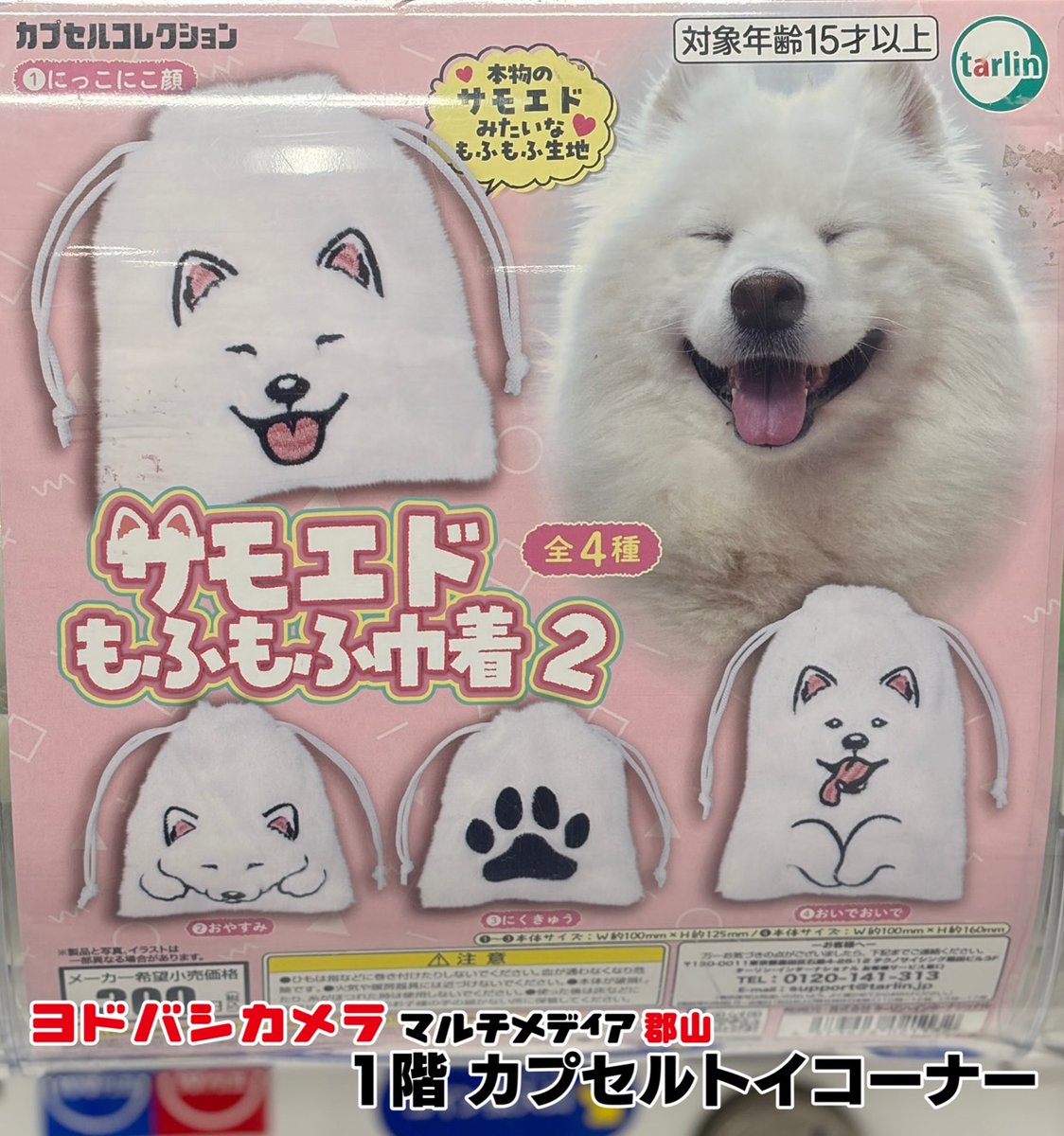 ヨドバシ郡山1階カプセルトイ販売情報‼️ ✅サモエドもふもふ巾着2 ✅名探偵コナン ほかほかカイロケース ✅こびとづかん 刺繍缶バッジ ✅San-Xオールスターズ ふわふわポーチ