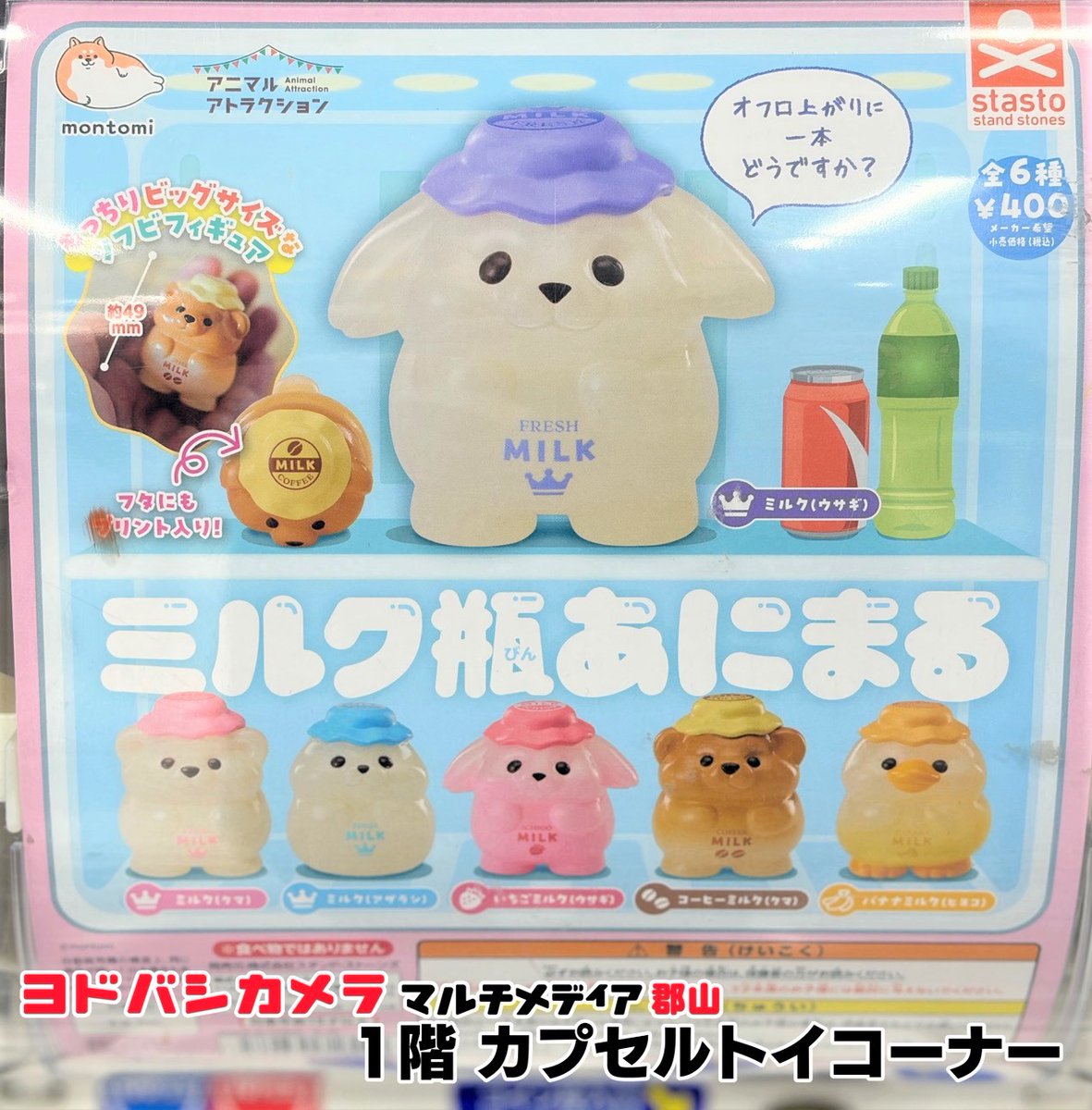 ヨドバシ郡山1階カプセルトイ販売情報‼️ ✅ミルク瓶あにまる ✅いい感じの棒をゲットした犬 ✅【フラットガシャポン】 EstherBunny(エスターバニー)ネイルシール ✅俺。今日からかえる ねこ ORE KYO-KARA NEKO 🏬