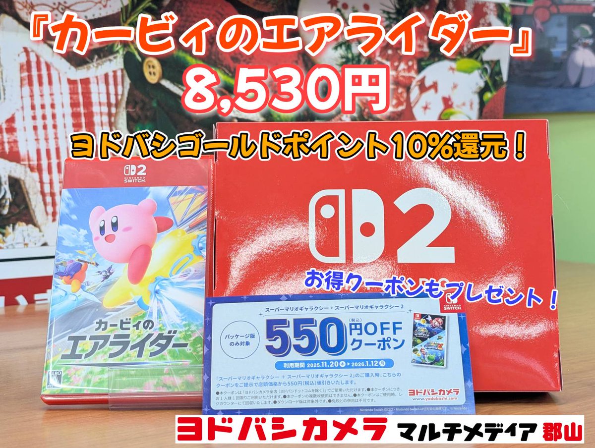 【22年ぶり最新作❗️】 『カービィのエアライダー』新発売‼️ さらにご購入いただくと『マリオギャラクシー1&2』が550円オフになるクーポンをプレゼント❗️🎁 お求めの際はB1Fゲームコーナーへお越しください♪ ➡️