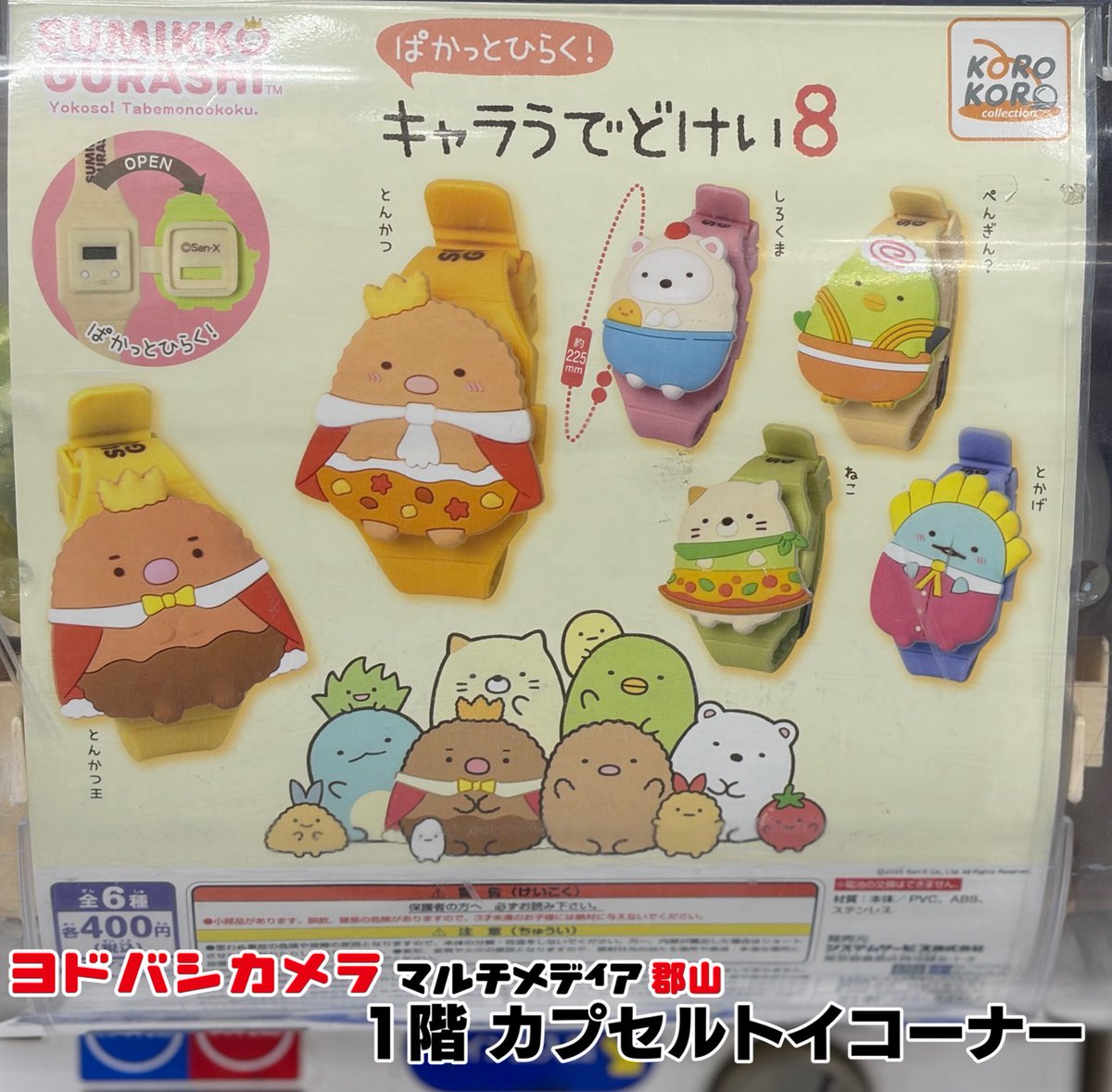 ヨドバシ郡山1階カプセルトイ販売情報‼️ ✅すみっコぐらし ぱかっとひらく!キャラうでどけい8 ✅ケアベア™ リストウォッチ ✅シナぷしゅ ライトブレス ✅らぶいーず ライトブレス