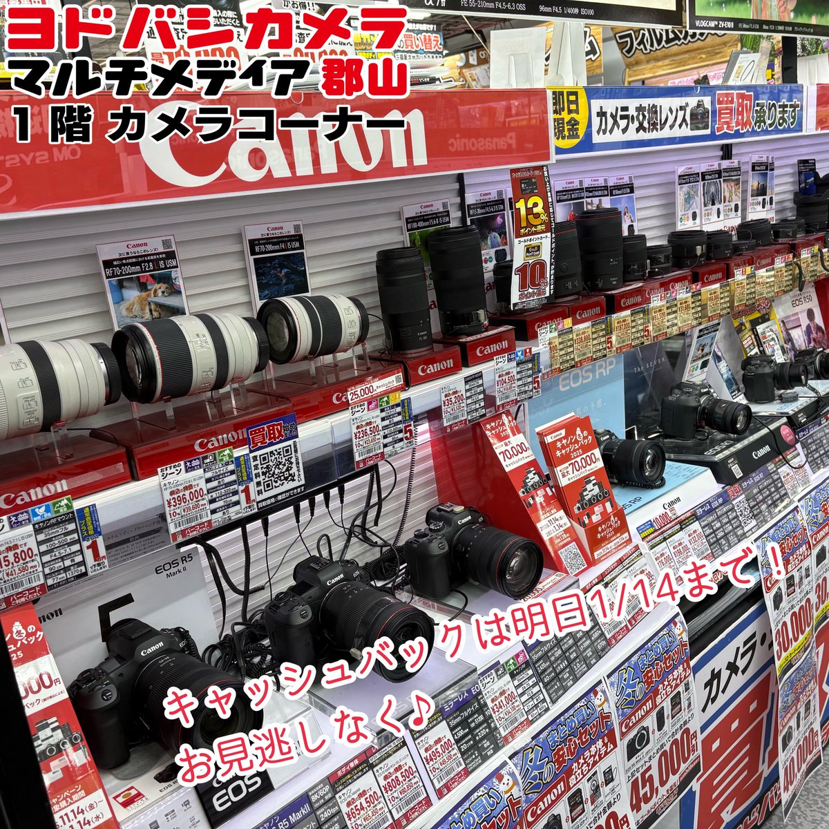 【☆終了間近☆】 ヨドバシ郡山1階カメラコーナーでは、キヤノン 冬のキャシュバックキャンペーンを開催中です💁 キャンペーン対象の購入期間は、明日1/14まで❗️ お得なこの機会をぜひお見逃しなく♪ ➡️
