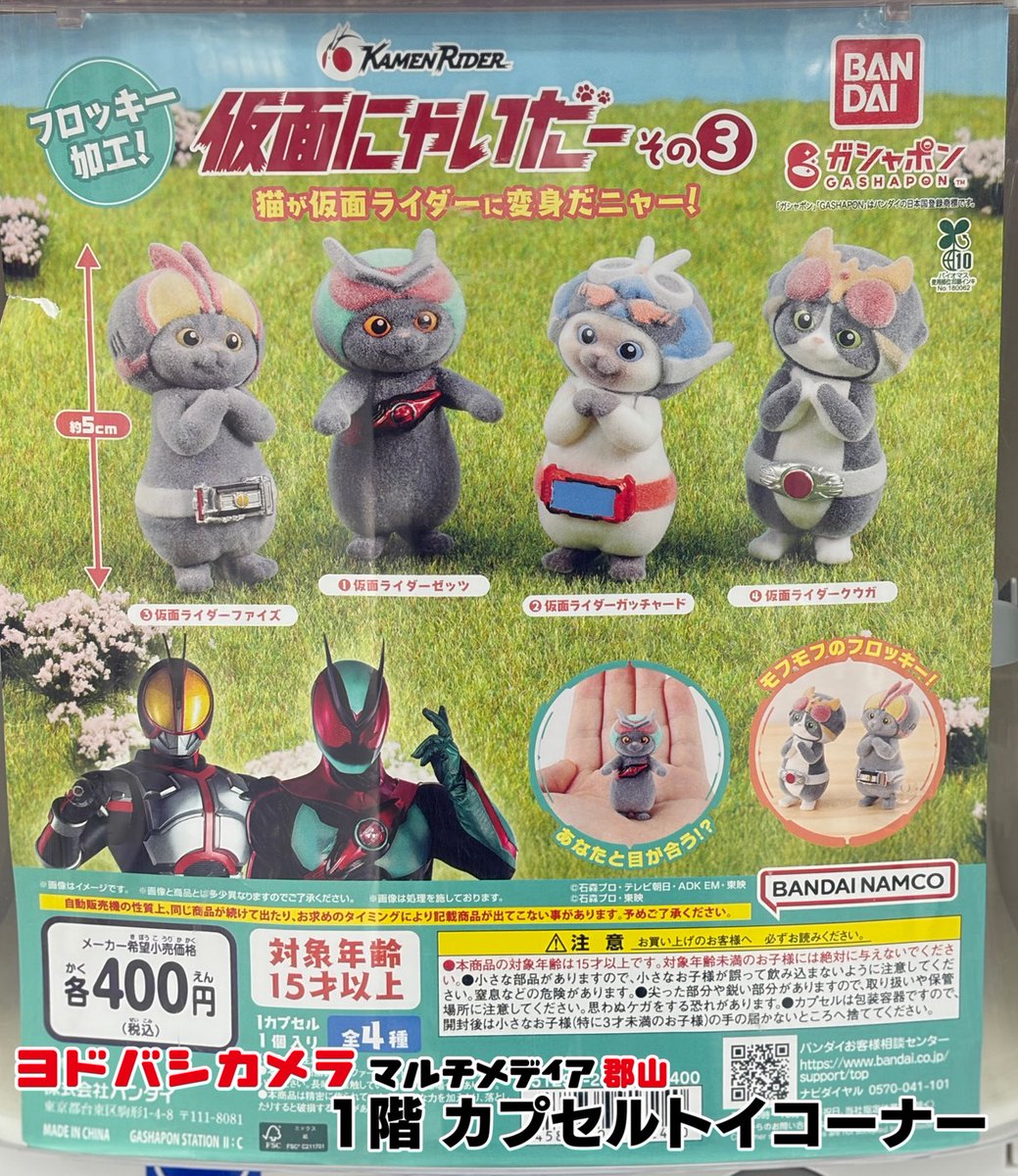 ヨドバシ郡山1階カプセルトイ販売情報‼️ ✅仮面にゃいだー その3 ✅「大長編タローマン 万博大爆発」 フィギュアマスコット ✅ことりの休日 ぐうたらスズメ ✅ハリー・ポッター ダイキャストダブルチャームコレクション
