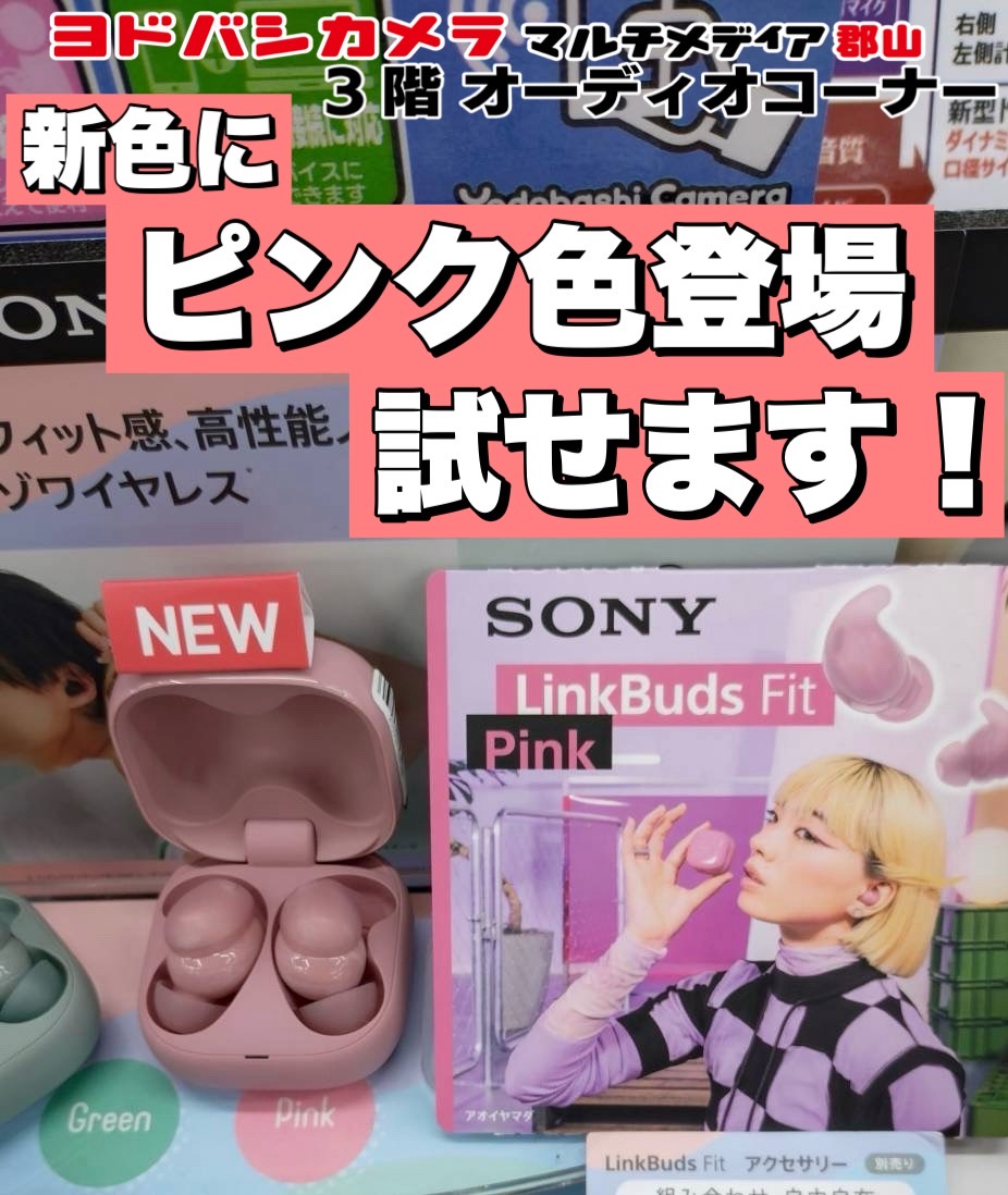 【オーディオ新製品情報】 SONYのワイヤレスイヤホンの 新色ピンクが予約受付中✨ 発売日は7月11日(金)❗️ 3階オーディオコーナーでは実際に試聴が可能です👌 お客様のスマホでお試しいただけます🎵 郡山駅前にお立ち寄りの際は ぜひお越しください💁 ➡yodobashi.com/product/100000…