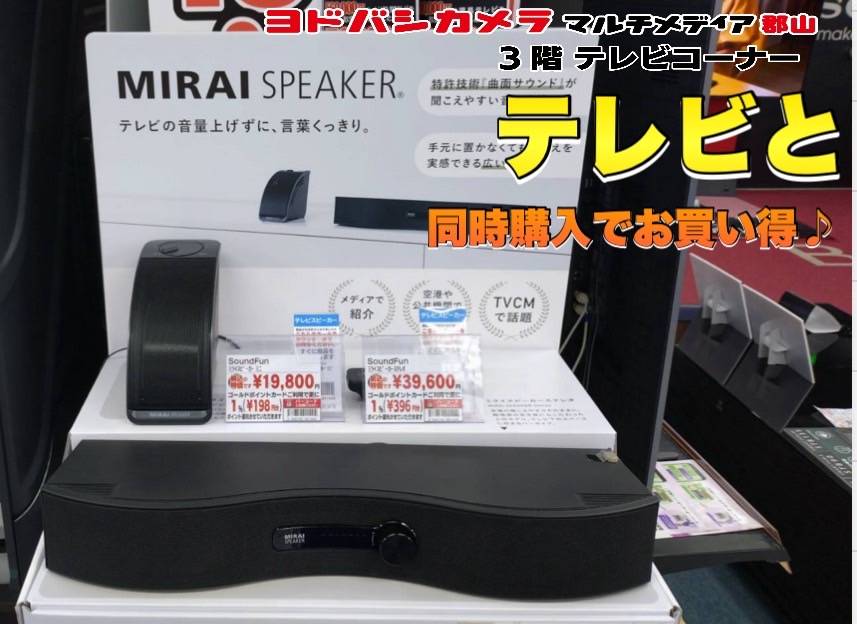 【 テレビのお供にミライスピーカー🔊】 テレビの音量を上げずに声がくっきり聞こえる✨ テレビ購入で溜まったポイントでお得にお買い物🎵 実際にお試しできます💁 ➡yodobashi.com/product/100000…