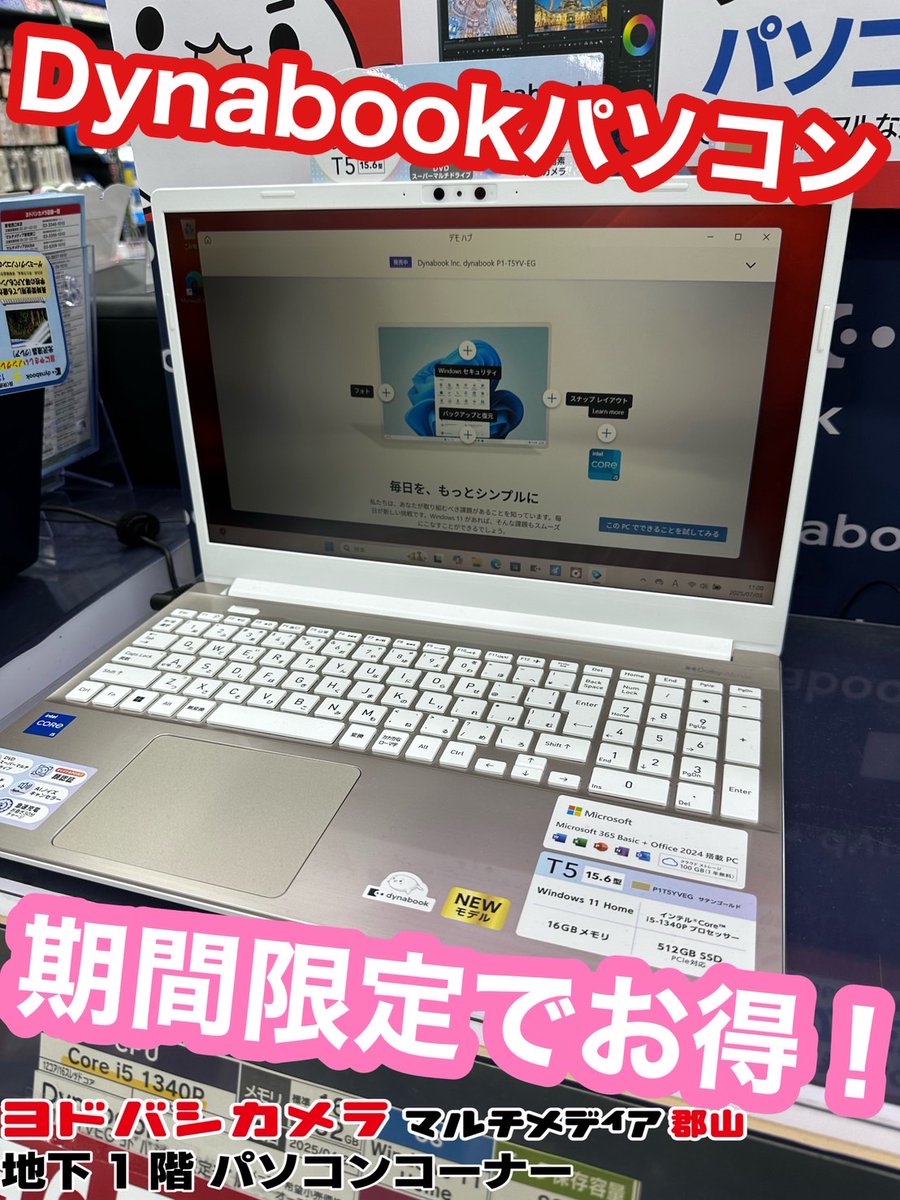 ただいまヨドバシ郡山では、 Dynabook T5シリーズが 特別価格でご購入いただけます🎵 数量限定・期間限定のチャンスをお見逃しなく👀 ➡yodobashi.com/product/100000…