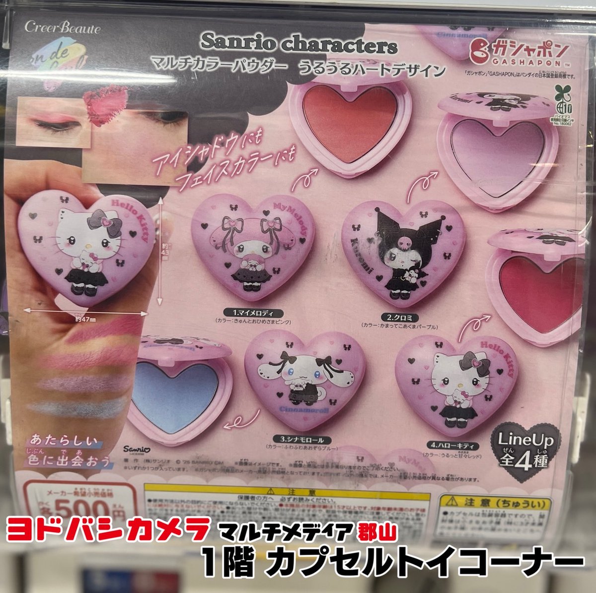 ヨドバシ郡山1階カプセルトイ販売情報‼️ ポンデクルール サンリオキャラクターズ うるうるハートデザイン マルチカラーパウダー サンリオキャラクターズ あたまこつんフィギュア バンダイ公式 どこでも!ガシャポンハンドル2 本屋さん ブックチャーム2