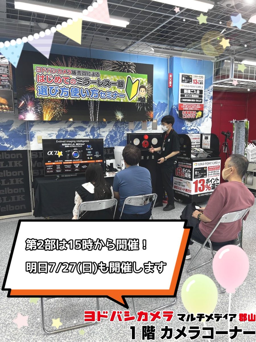 / 本日も13時より開催📣 ヨドバシカメラ販売員による ミラーレス一眼セミナー \ 「カメラに興味はあるけど、どう始めたらいいか…」 そんなあなたにぴったりのイベントです✨ ぜひお越しください💁