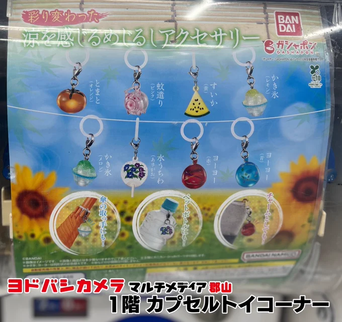 ヨドバシ郡山1階カプセルトイ販売情報‼️ ✅彩り変わった涼を感じる めじるしアクセサリー ✅はぴだんぶい めじるしアクセサリー ソロキャンプ ✅サンリオキャラクターズ つるりん南極フィギュア ✅森永乳業 ヨーグルトミニチュアコレクション