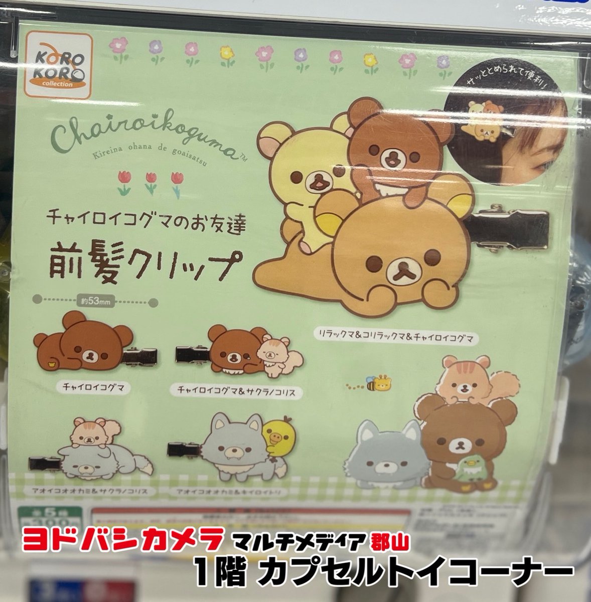 ヨドバシ郡山1階カプセルトイ販売情報‼️ ✅チャイロイコグマのお友達 前髪クリップ ✅San-X オールスターズ フィギュアコレクション Vol.3 ✅液体になりつつある猫 マスコットフィギュア ✅すみっコぐらし めじるしマスコットチャーム