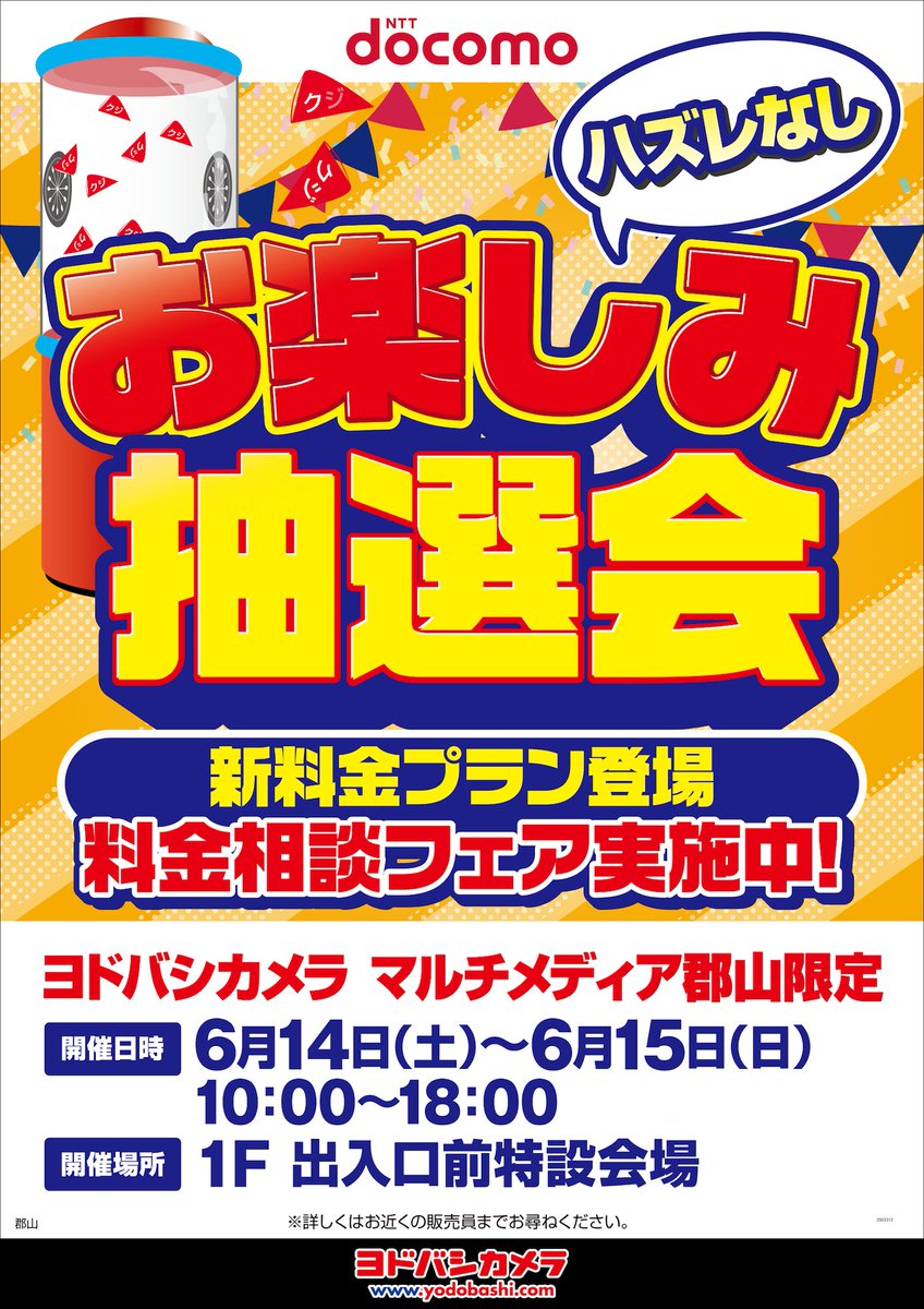 【残りわずか!】 ヨドバシ郡山ドコモコーナーでは 料金相談会&抽選会を開催中✨ 6月5日から始まった新料金プランの ご相談はぜひお任せください💁 景品も残りわずかとなりました📣 ご来店の際はぜひお立ち寄りください❗️ ➡