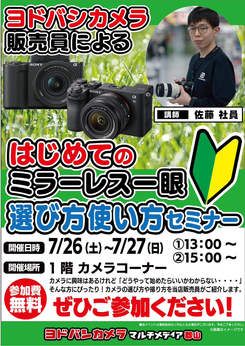 ⭐️イベント開催⭐️ ヨドバシ郡山 1階カメラコーナーにて、一眼カメラに興味のある方を対象にセミナーを実施します 気になる一眼カメラの選び方・使い方を販売員が解説♪ 当日参加も可能ですので、ぜひお気軽にご参加ください💁 ➡️yodobashi.com/ec/news/200009…