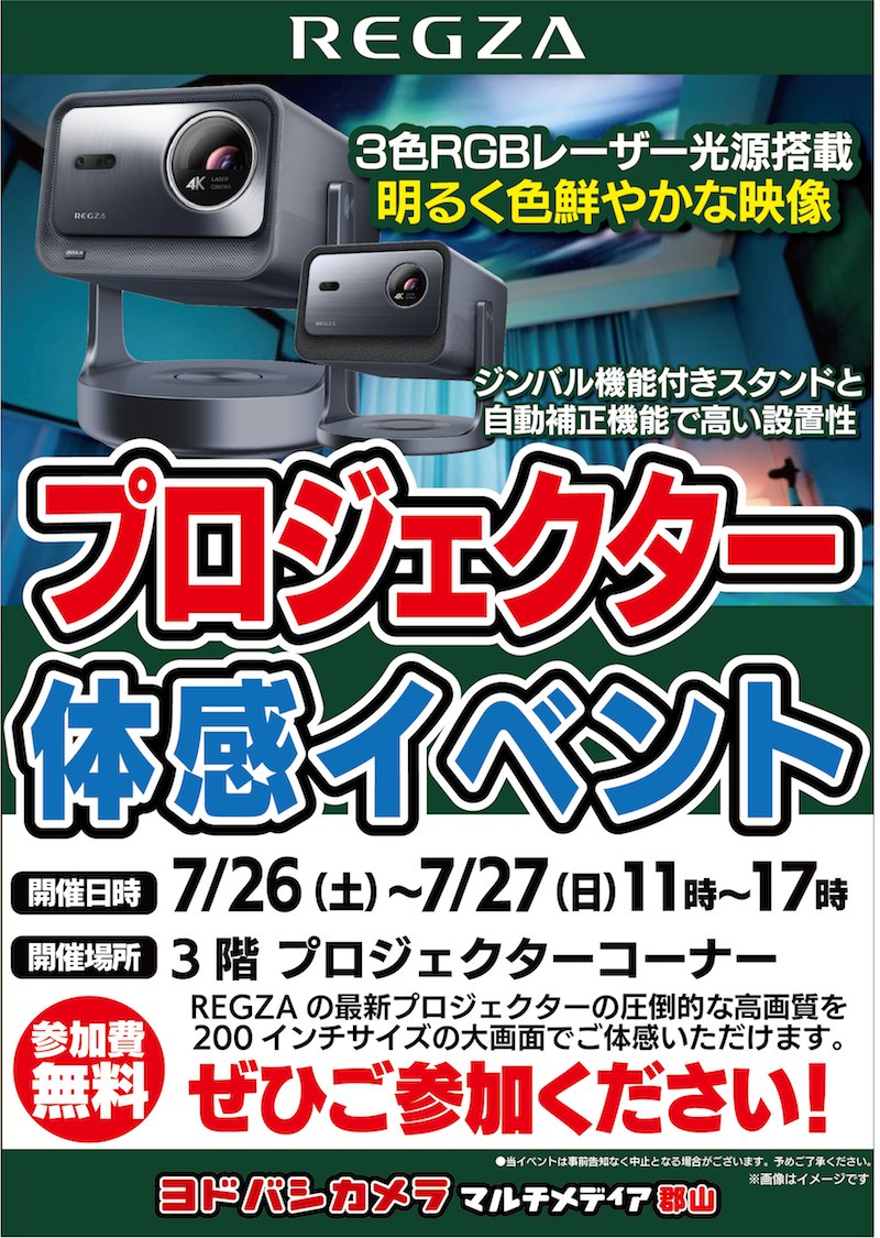 ⭐️プロジェクター体感イベント開催⭐️ 人気のプロジェクターの圧倒的な高画質を 最大200インチの大画面でご体感いただけます♪ お客様に用途にあったプロジェクターをご提案させていただきます。ぜひご参加ください💁 🗓️7/26(土)27(日) 🕙11時~17時 ➡️yodobashi.com/ec/news/200009…