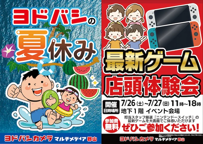 週末イベント第2弾‼️ 夏休み期間中は毎週末❗️ ヨドバシ郡山で 楽しいイベントを企画しております‼️ 今週の目玉は カメラセミナー📸と最新ゲームの体験会🎮 その他にもたくさんのイベントがありますので、ぜひご来店ください💁 🏬yodobashi.com/ec/store/0053/