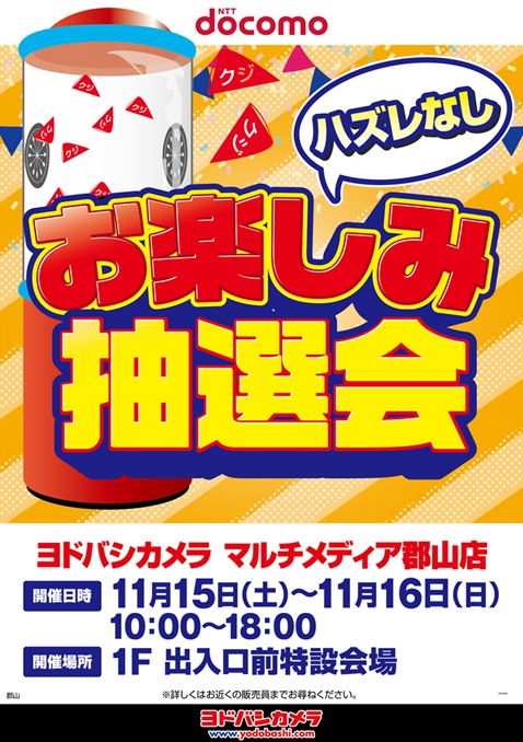 / 週末イベント情報❗️ \ 参加費無料でどなたでもご参加いただける docomo「エアーくじ」抽選会を開催します。 ハズレくじなしで素敵な景品が当たります。 お気軽にご参加ください😊 🗓️11/15(土)・16(日) 🕙各日10:00~18:00 📍1階出入口前 特設会場 ➡️