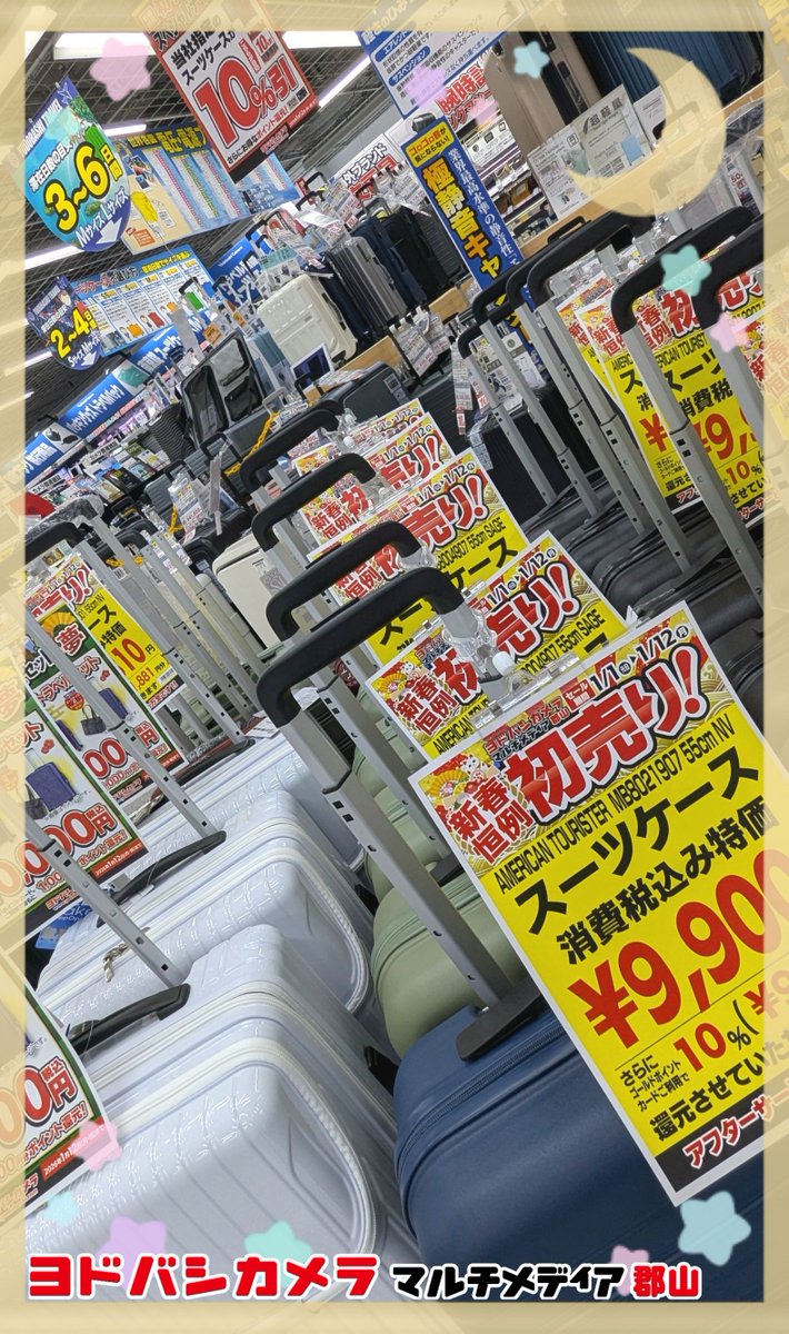 【初売りセール開催中】 ヨドバシ郡山では1月12日(月)まで お買い得初売り商品を多数ご用意✨ 1階スーツケースコーナーでは 高品質スーツケースがお買い得🧳 その他、当社指定商品が10%引きとお買い得です🎵 ぜひお立ち寄りください💁 ➡