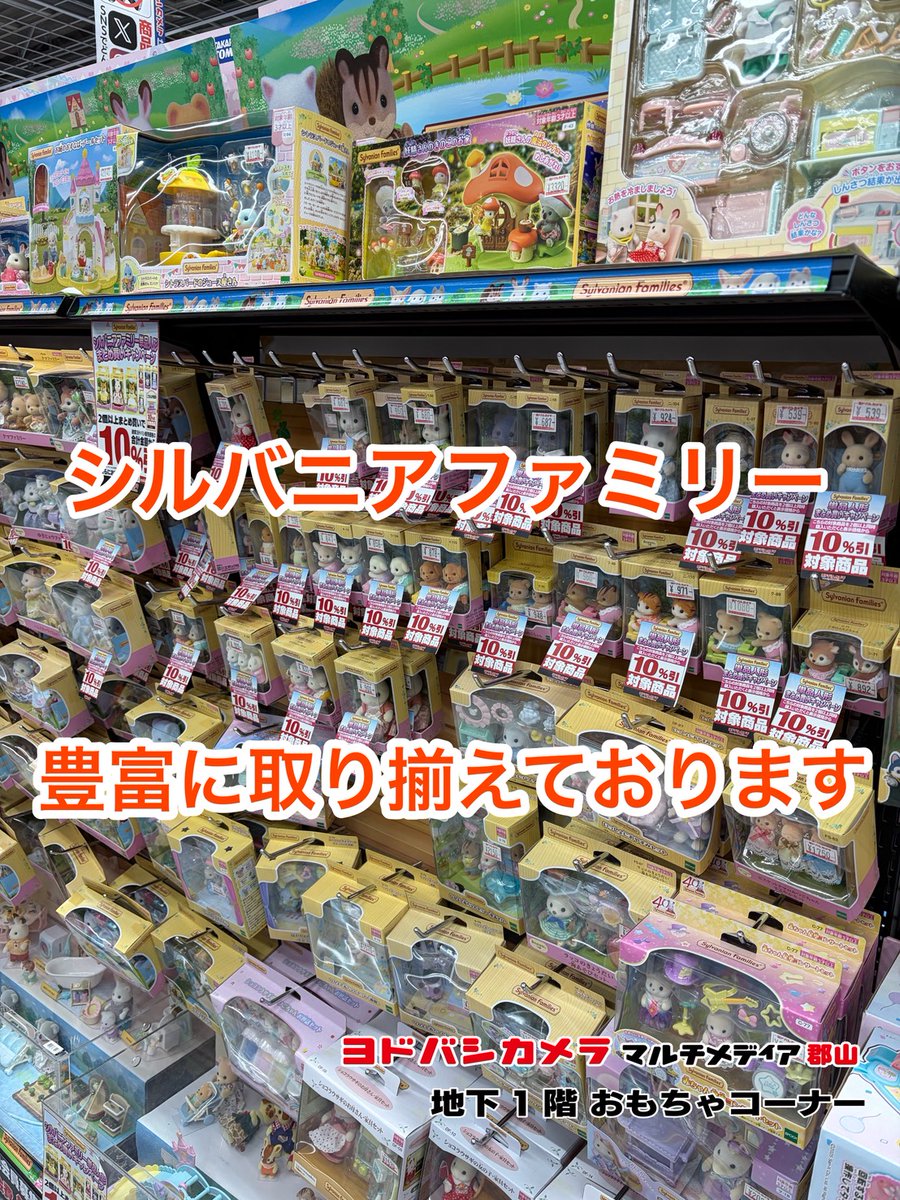 【おすすめ商品のご案内】 ヨドバシ郡山ではシルバニアファミリーを豊富に取り揃えております❗️ また 1/12(月・祝)までの期間限定、単品人形2点以上お買い上げで10%引きの、お得な新春大特価セールを開催中です😊 ぜひお越しください💁 ➡️