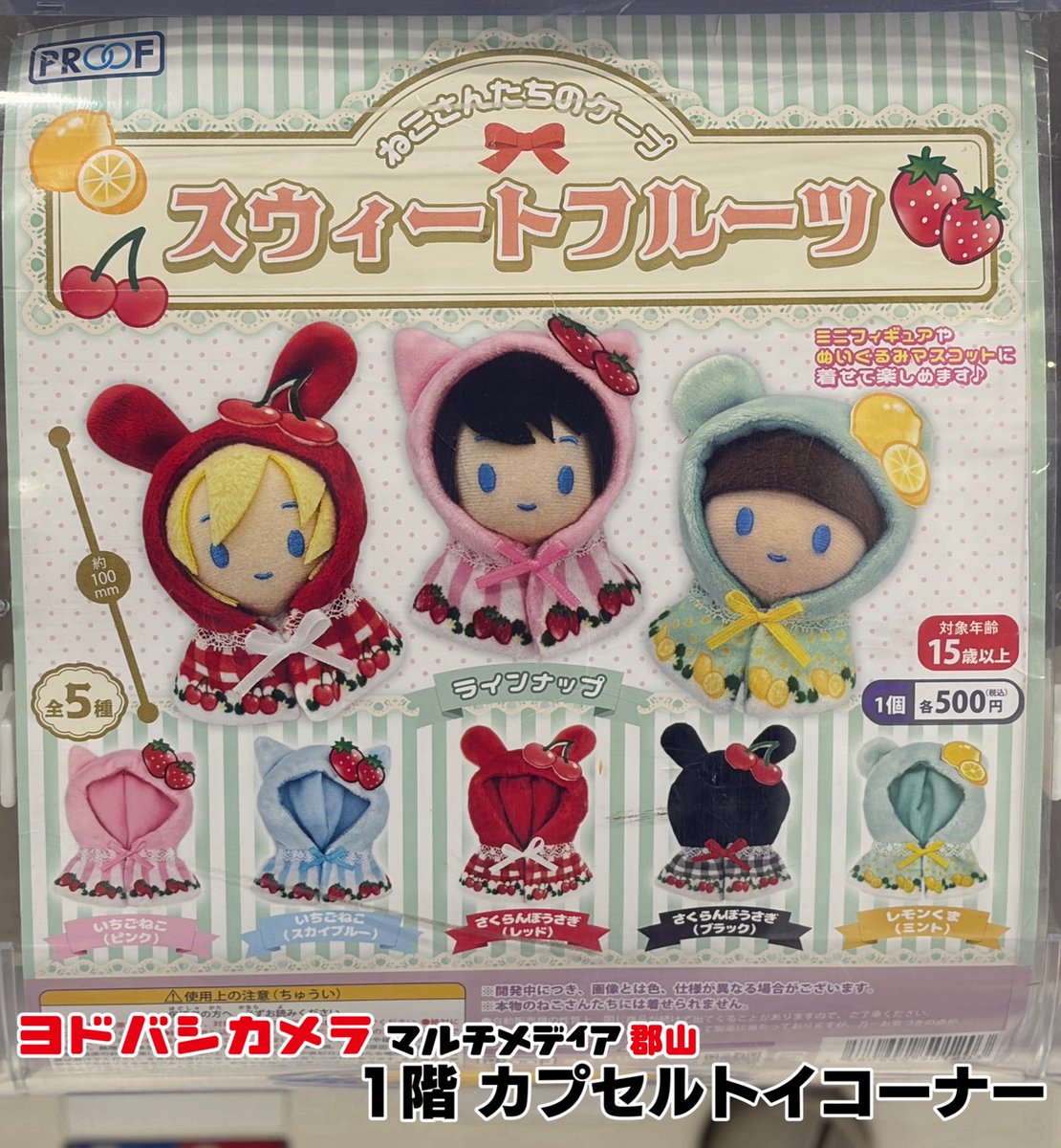 ヨドバシ郡山1階カプセルトイ販売情報‼️ ✅ねこさんたちのケープ スウィートフルーツ ✅カプセルQミュージアム 日本のお城 名鑑 ✅【フラットガシャポン】 ポケットモンスター クリアラバーコースター3 ✅mikko illustrations LOVE FRIENDS ぷっくりラバーヘアピン