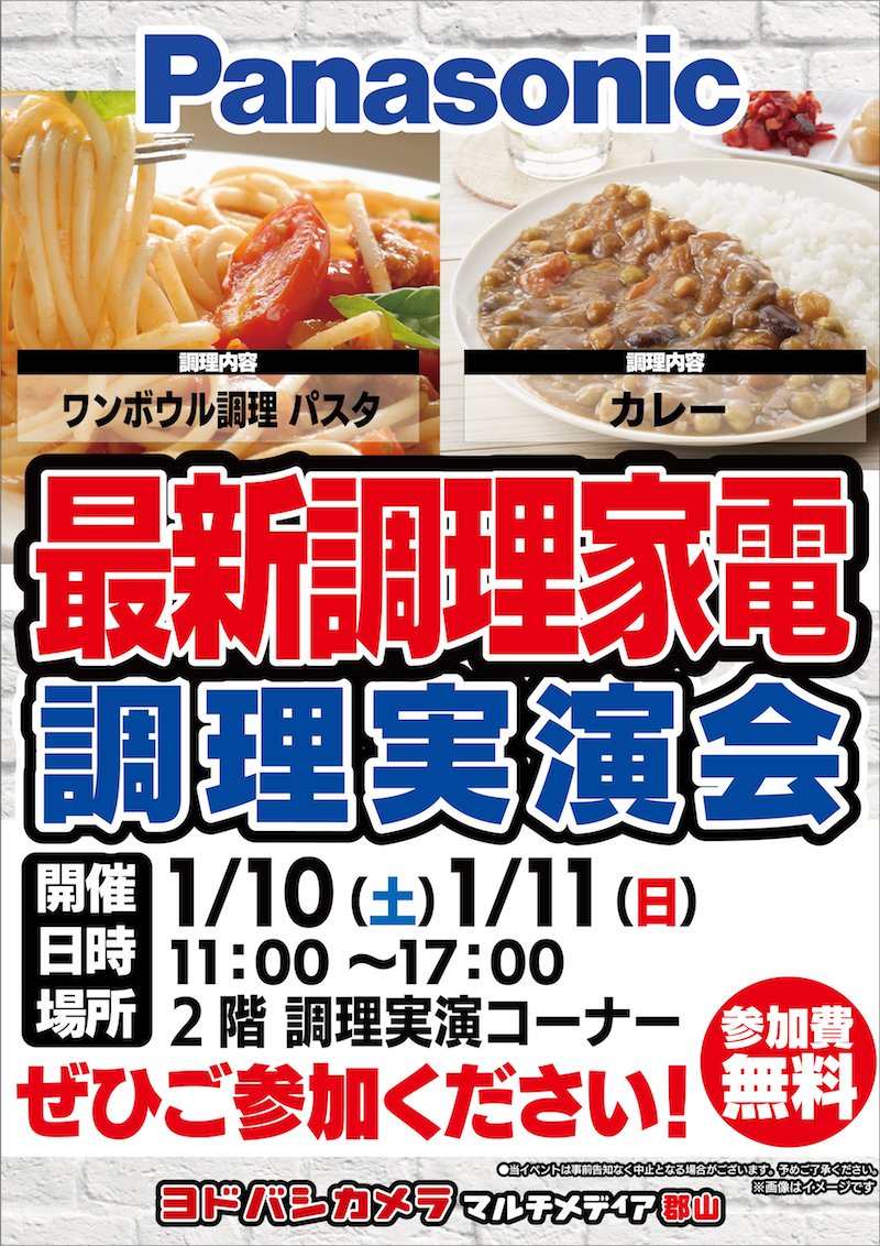 \調理実演会❗️/ パナソニックのオーブンレンジと自動調理鍋の調理実演会を開催します。 今回はオーブンレンジでは、パスタをワンボウル調理。 自動調理鍋ではカレーを作ります。 実際にお客様にもご体験いただけます😊 🗓️1/10(土)11(日) 🕙各日11:00~17:00 🏬