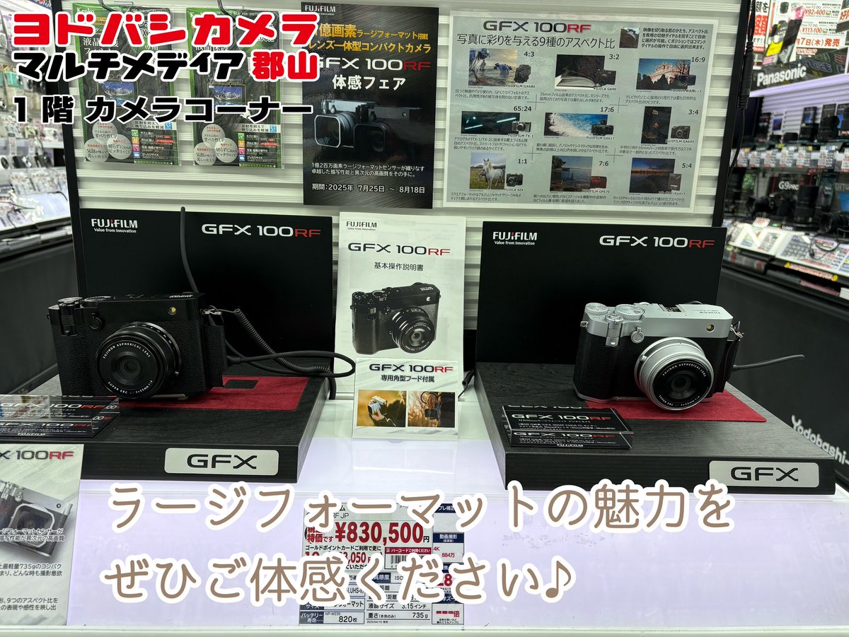 【☆イベント開催☆】 ヨドバシ郡山1階カメラコーナーでは 7/25~8/18に富士フイルムのGFX100RFの 体感イベントを開催いたします✨ 1億2百万画素高速センサーを 実際にご体感いただけます🎵 ぜひお越しください💁 ➡yodobashi.com/product/100000…