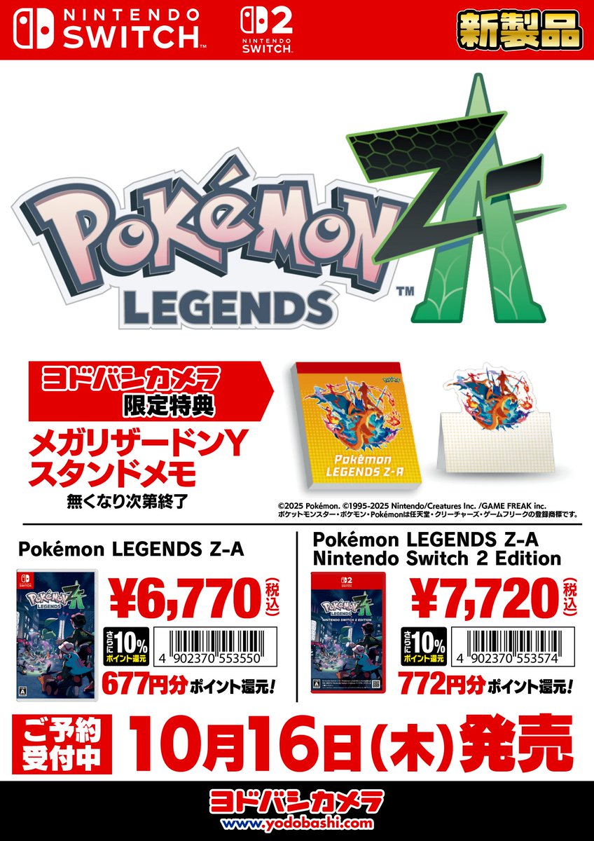【ポケモン最新作予約開始!】 Nintendo Switchソフト 「Pokemon LEGENDS Z-A」が ヨドバシ郡山で予約受付中✨ 早期予約特典もございます🎵 広大な世界での新たな冒険に備え ぜひご予約ください💁 ➡yodobashi.com/?word=Pokemon+…