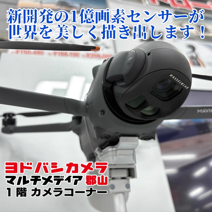 【☆新製情報☆】 1階カメラコーナーではDJIより発表された最新機種 DJI Mavic 4 Proをお取り扱い中です🎵 Hasselbladカメラによる1億画素の世界は 高い色再現性で抜群の画作りが可能✨ ご用途に応じて3種類のモデルがお選びいただけます😊 ➡