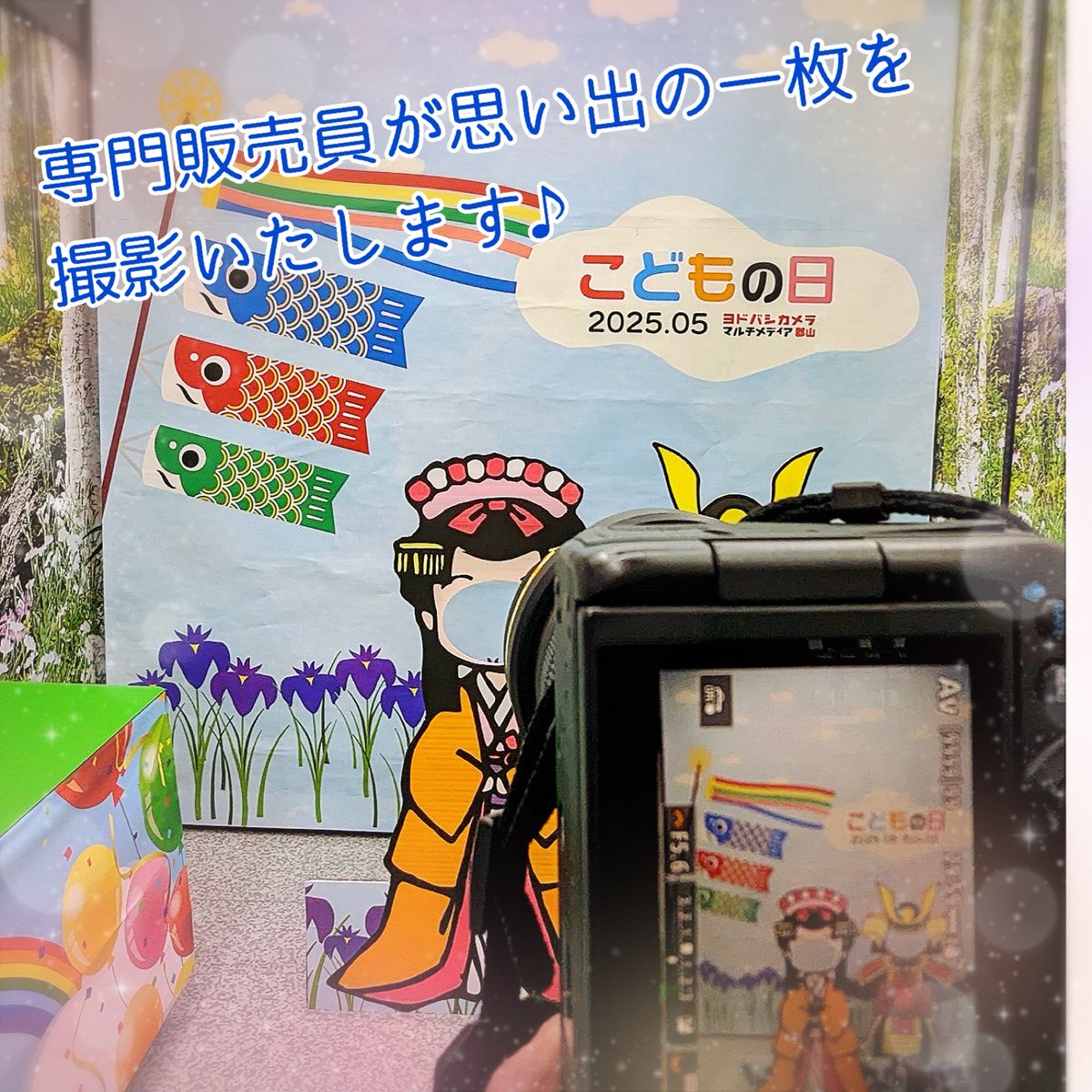 【☆GWイベント開催中☆】 1階カメラコーナーでは、 こどもの日無料撮影会を引き続き開催中です✨ 撮影した写真は無料でプレゼント中🎁 ご来店の折にはぜひお立ち寄りください💁