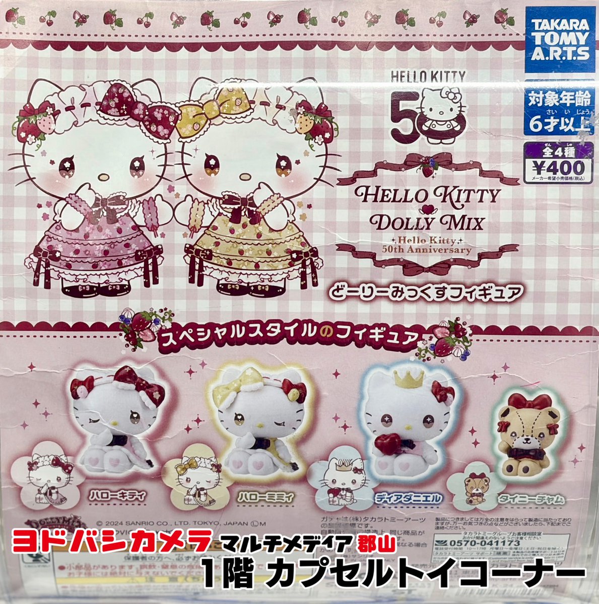 ヨドバシ郡山1階カプセルトイ販売情報‼️ ✅ハローキティ DOLLY MIX(どーりーみっくす)フィギュア ✅ごきげんぱんだ スクイーズマスコット2 ✅クレヨンしんちゃん おなまえスイング ✅ふろあがり クレヨンしんちゃん 🏬