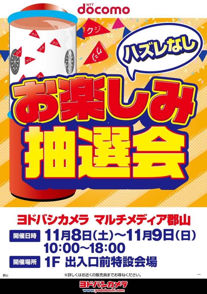 【イベント情報♪】 docomoお楽しみ抽選会を開催します❗️ ハズレなしのエアーくじ抽選会に どなたでもご参加いただけます😊 併せて、通信料金の見直しのご相談も承ります💁 ぜひご参加ください💁 🗓️11/8(土)9(日) 🕙10:00~18:00 📍1階 出入り口前特設会場 ➡️