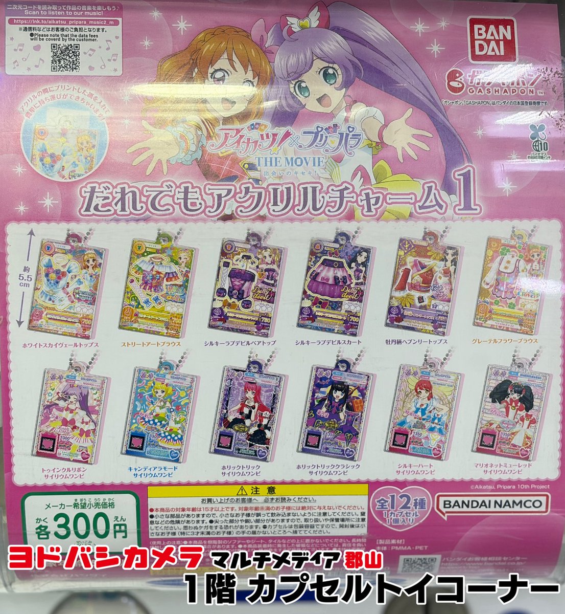 ヨドバシ郡山1階カプセルトイ販売情報‼️ ✅アイカツ!×プリパラ だれでもアクリルチャーム1 ✅まちぼうけ メタルヒーローの場合 ✅押忍!番長 ミュージックプッシュボタンマスコット ✅スミスキー Strap Accesories Series2