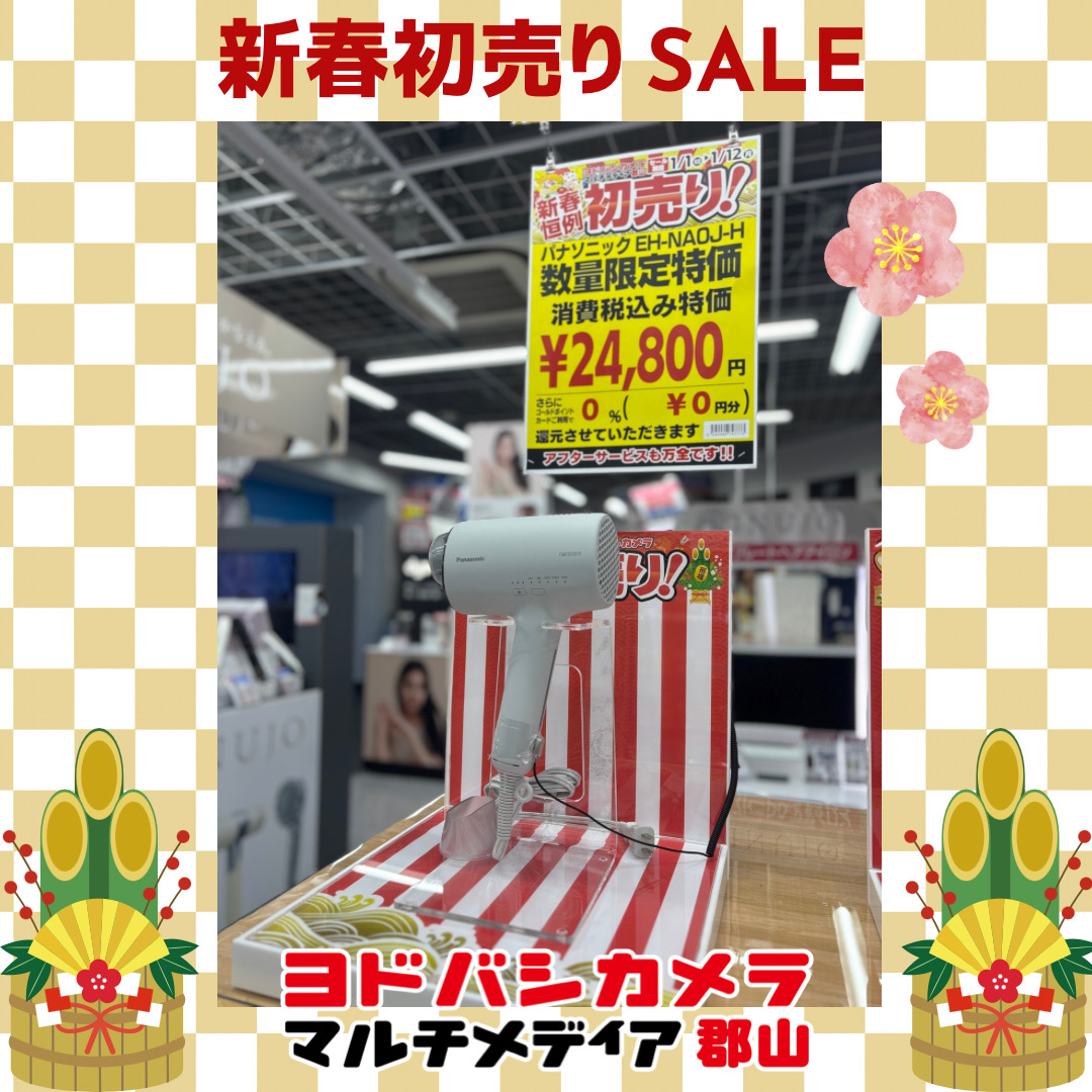 【新春恒例🎍初売り特価商品‼️】 人気のナノケアドライヤーが初売り特価❗️ 3階理美容家電コーナーでは、 チラシにはないお買い得商品も 多数取り揃えております‼️ ぜひご来店ください❗️💁 ➡️