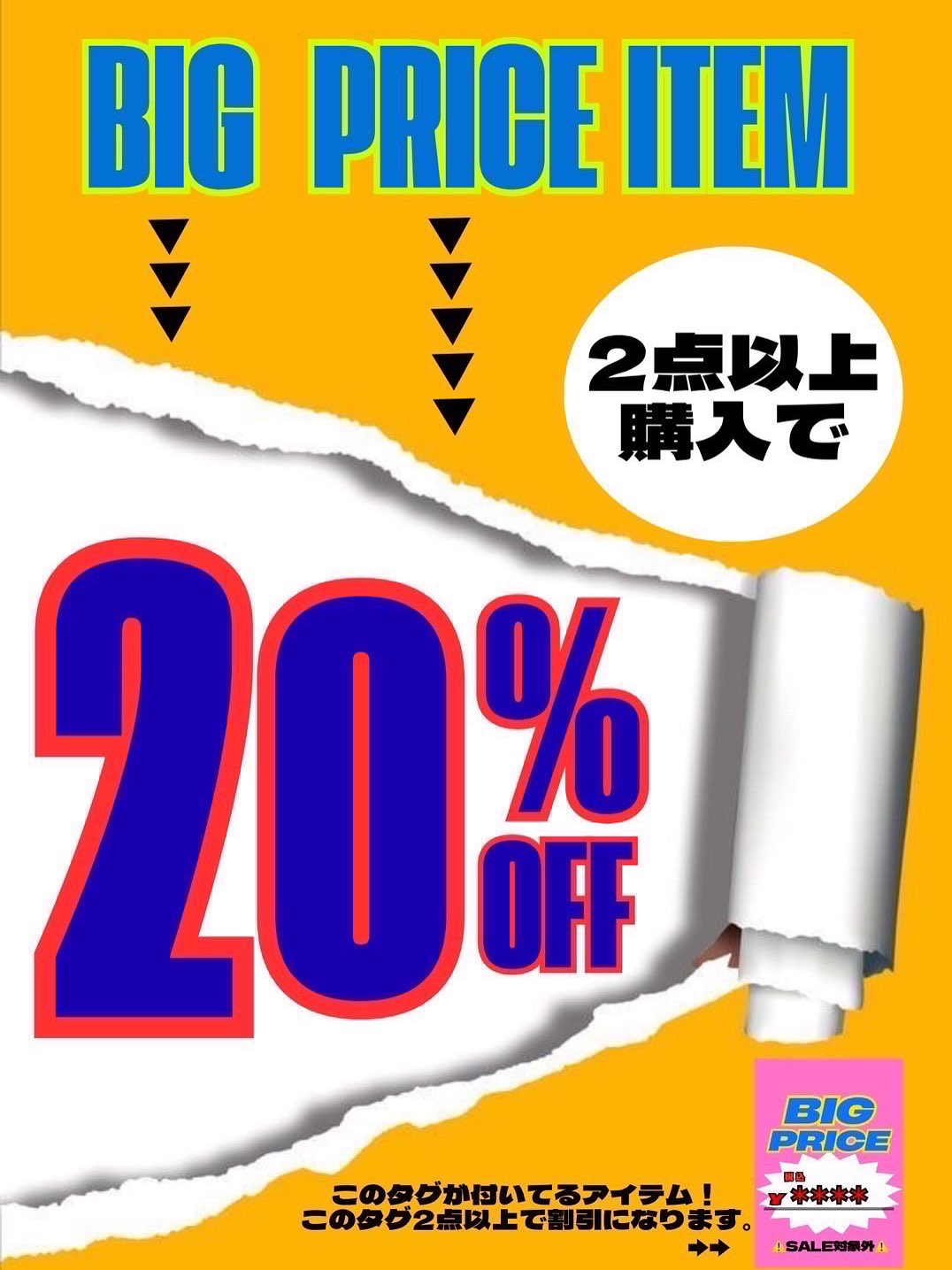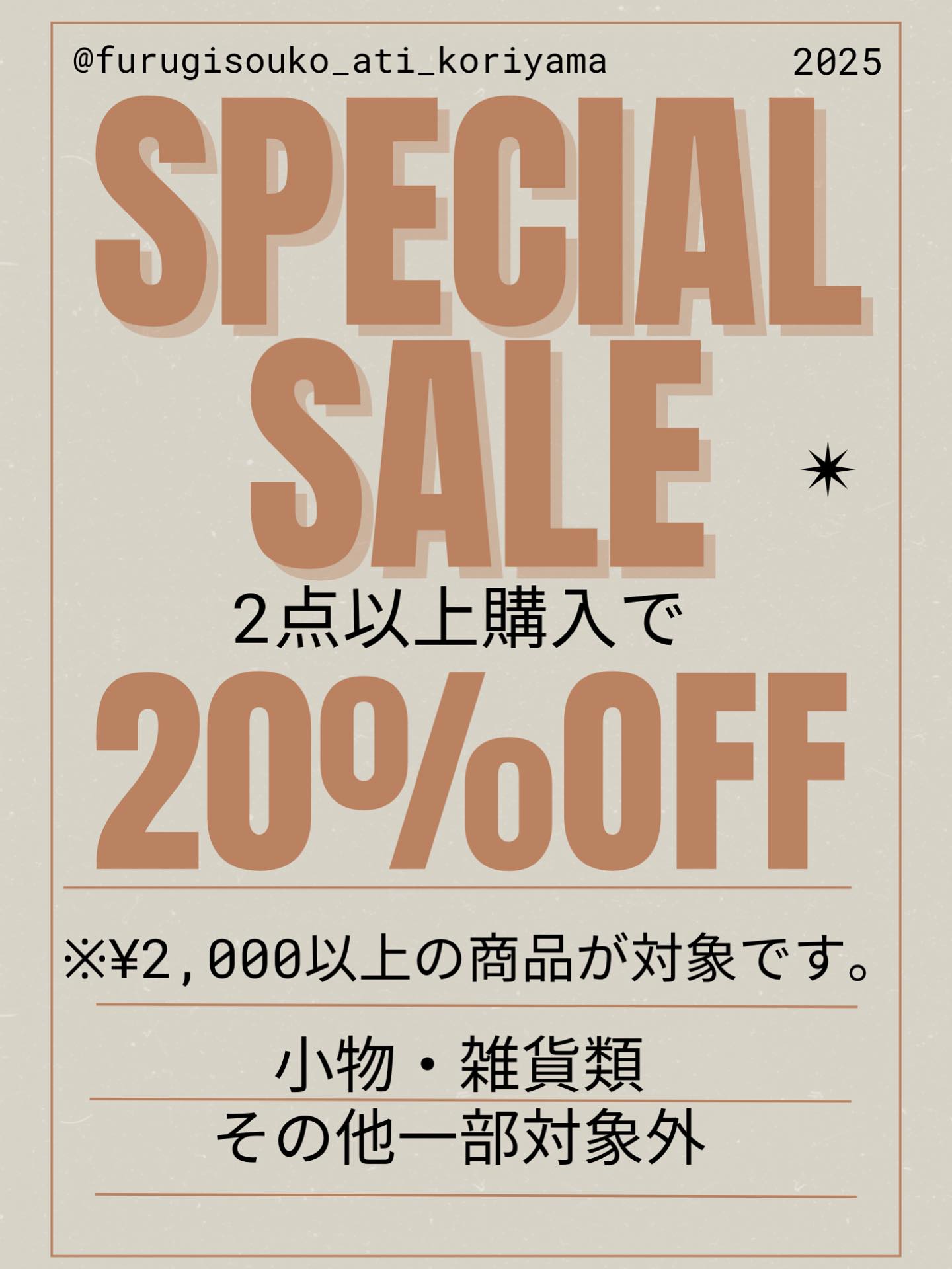 -古着倉庫Ati郡山店- 9/14(日)より開催です いつもならSALE対象外商品も、 こちらのタグが付いているアイテム2点以上購入で、20%OFFになります お得な機会にぜひご利用下さい♀️ #古着 #古着屋 #福島古着屋 #郡山古着屋 #古着倉庫米沢 #古着倉庫 #郡山駅前 #郡山 #郡山市 #いわき #白河市 #須賀川市 #いわき市 #二本松市 #新潟 #会津若松