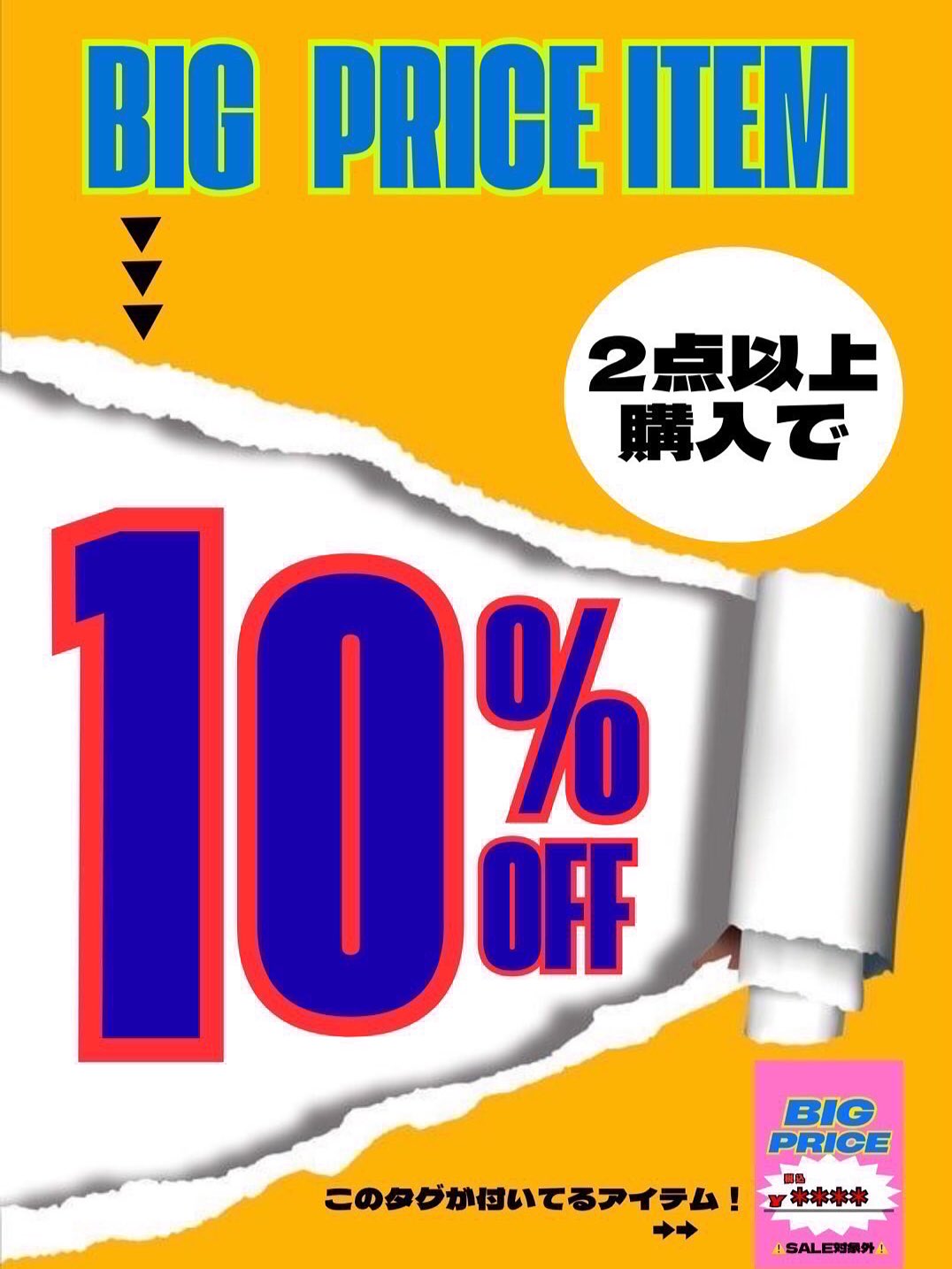 -古着倉庫Ati郡山店- こちらも本日より開催です いつもならSALE対象外商品も、 こちらのタグが付いているアイテム2点以上購入で、10%OFFになります お得な機会にぜひご利用下さい♀️ #古着 #古着屋 #福島古着屋 #郡山古着屋 #古着倉庫米沢 #古着倉庫 #郡山駅前 #郡山 #郡山市 #いわき #白河市 #須賀川市 #いわき市 #二本松市 #新潟 #会津若松