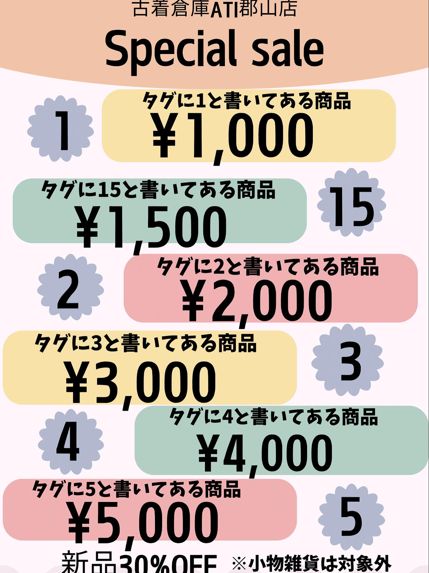 -古着倉庫Ati郡山店- 明日7/5からこちらの熱いSALEが始まります️️️️️️️️️ みなさまのご来店お待ちしてます #古着 #古着屋 #福島古着屋 #郡山古着屋 #古着倉庫米沢 #古着倉庫 #郡山駅前 #郡山 #郡山市 #いわき #白河市 #須賀川市 #いわき市 #二本松市 #新潟 #会津若松