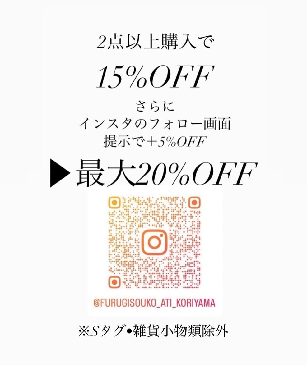 -古着倉庫Ati郡山店- 2点以上購入で15%OFF インスタフォロー画面提示で+5%OFF 最大20%OFFです! #古着 #古着屋 #福島古着屋 #郡山古着屋 #古着倉庫米沢 #古着倉庫 #郡山駅前 #郡山 #郡山市 #いわき #白河市 #須賀川市 #いわき市 #二本松市 #新潟