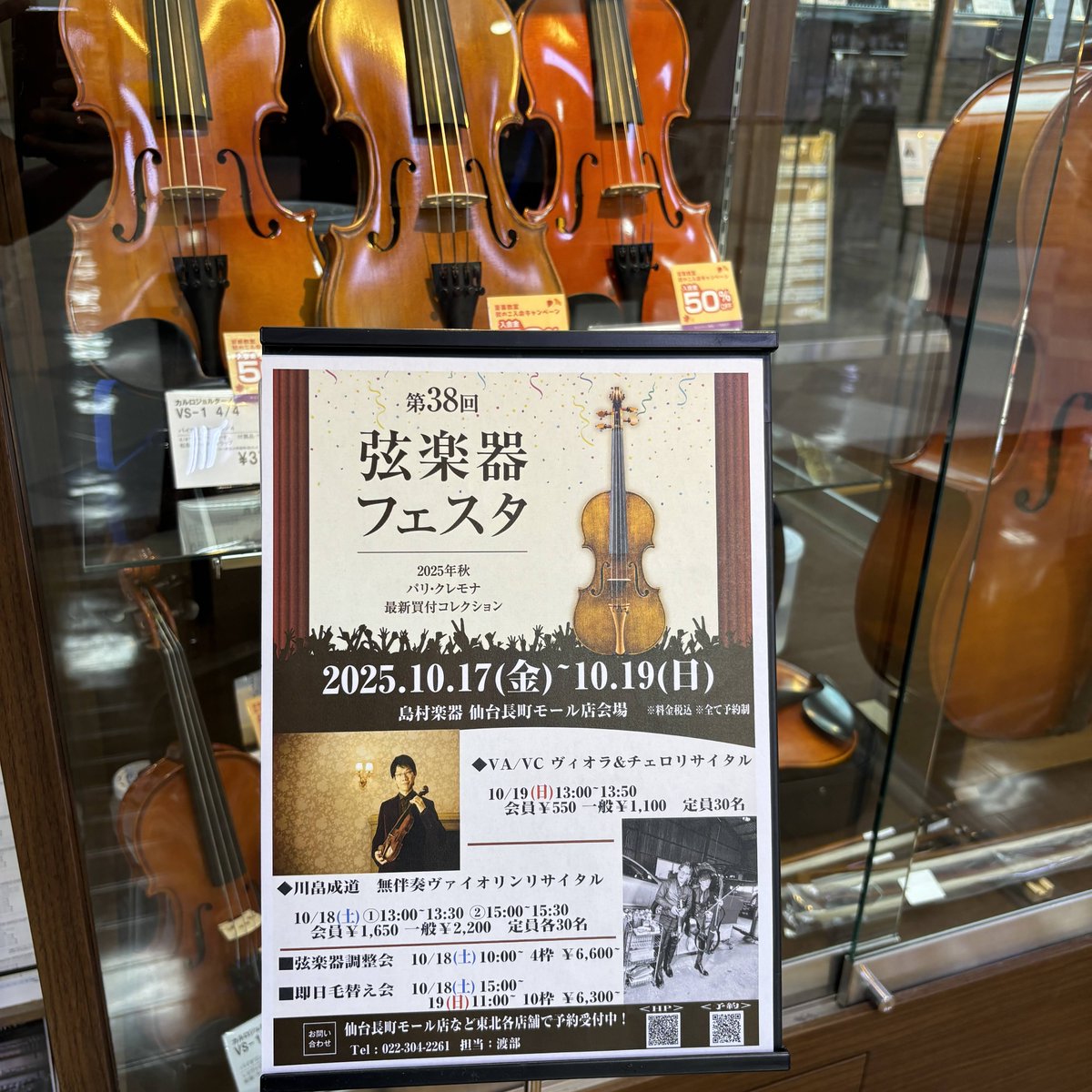 【#弦楽器フェスタ】🎻 10月17日(金)~10月19日(日) 島村楽器 仙台長町モール店で弦楽器フェスタが開催されます! 弦楽器の調整会、弓の毛替え会、ヴァイオリン/チェロリサイタルなどのイベントを予定しております♪ 是非この機会にご来場くださいませ😊
