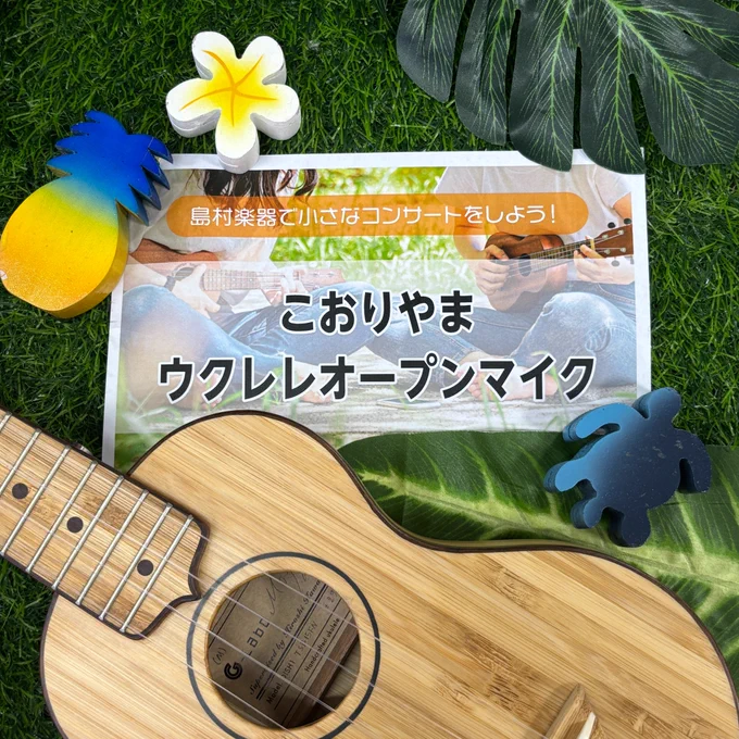 【イベント情報】 2025年6月28日(土)12:00~ 店内特設会場にて // こおりやまウクレレオープンマイク開催します‼️ \\ ウクレレ好きのみなさんによる #ウクレレ LIVE🌺 観覧無料なので気軽にフラッとお越しください😊 今回は8組出演します! (出演者の詳細はリプ欄へ) 🔗