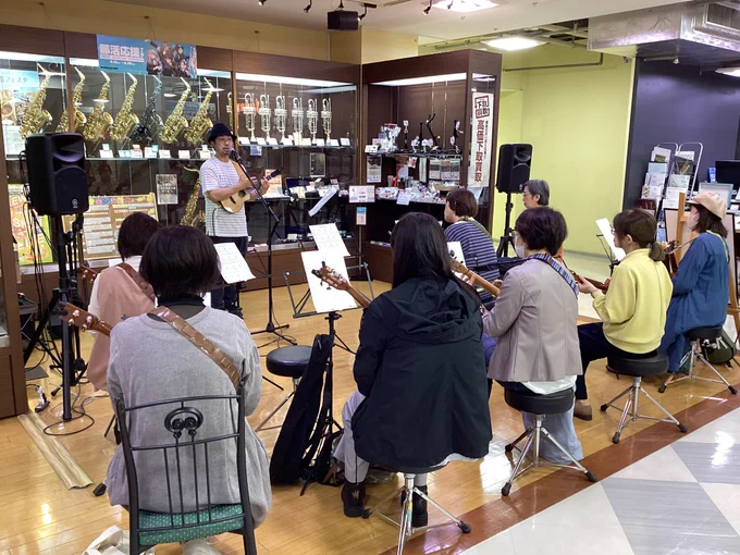 金子先生のウクレレライブ&ワークショップ 第一部終了しました‼️ 参加頂いた皆さんありがとうございました✨ 第二部は14時からです! LIVE観覧・ワークショップ参加無料なのでお気軽に、ふらっとお越しください〜☺️ (ウクレレ持ってなくても大丈夫です🙆♀️)#ウクレレ #GWイベント