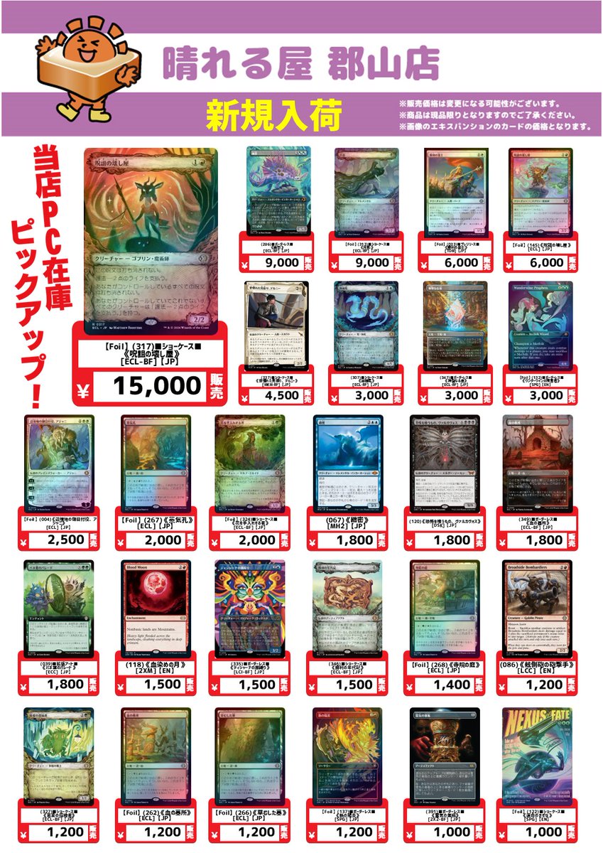 【商品情報】#晴れ郡PC新入荷 本日、新たに PCシングルカード を追加いたしました😆 『ローウィンの昏明』のカードも多数入荷しております🌙 現品限りとなりますのでお求めはお早めに‼️ ご注文はこちら🔽