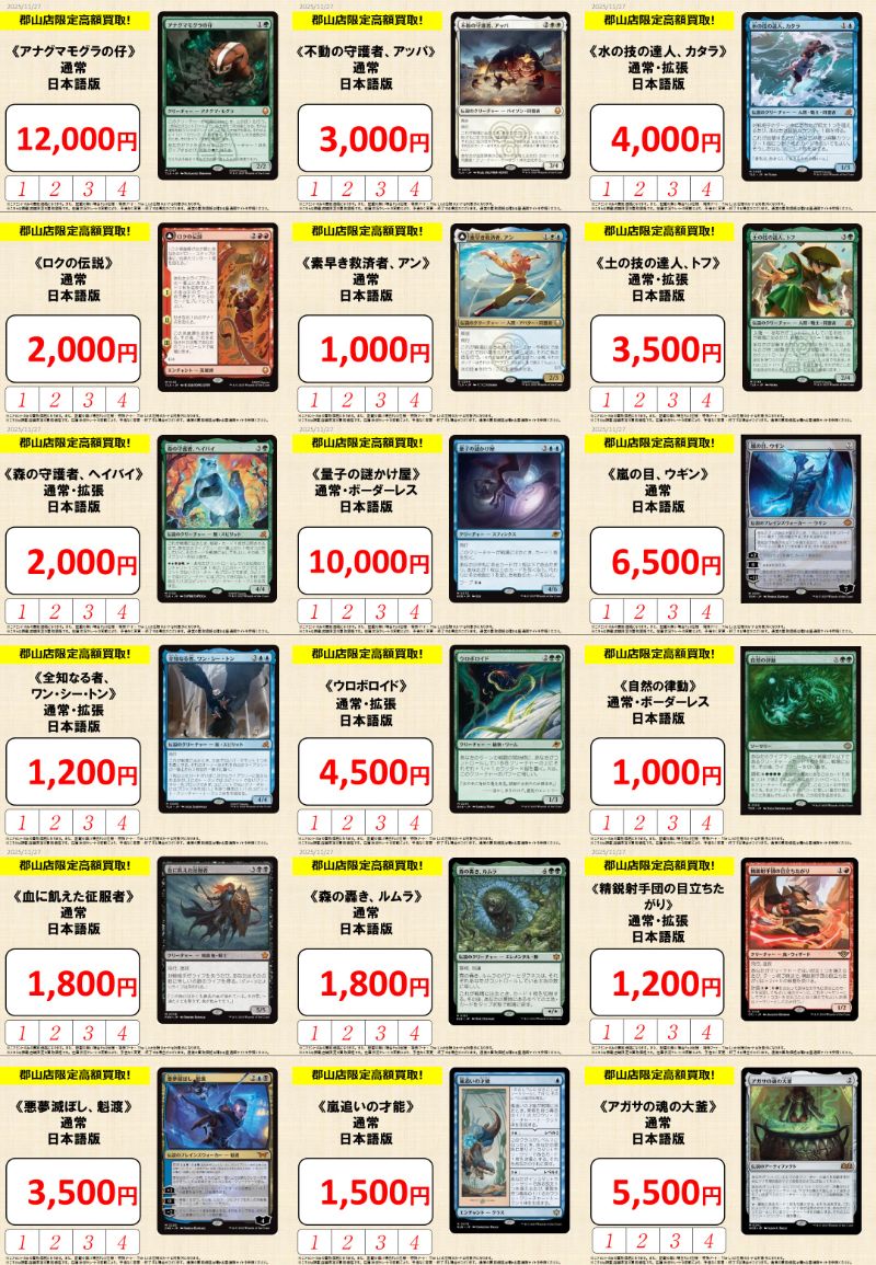 【店舗情報】 いらっしゃいませ☀️ 晴れる屋郡山店オープンです‼️ ✨注目イベント✨ ✅木曜ブースタードラフト ✅スタンダード・ショーダウン 詳しくはこちらから🔽 🎯注目商品🎯 『アバター 伝説の少年アン』各種商品 皆さまのご来店お待ちしております🙏