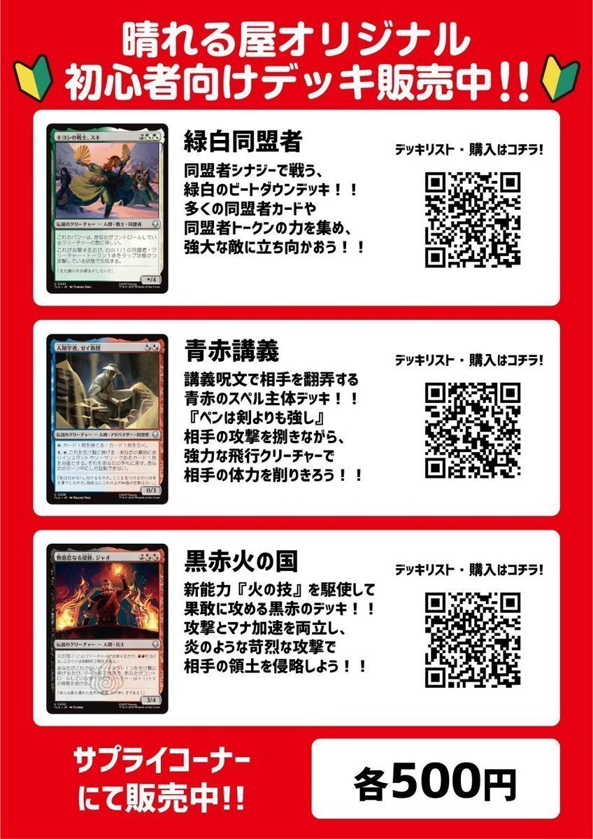 【店舗情報】 おはようございます☀️ 晴れる屋郡山店本日14時オープンです‼️ ✨注目イベント✨ ✅木曜ブースタードラフト ✅スタンダード・ショーダウン 詳細はこちら🔽 🎯注目商品🎯 『マジック:ザ・ギャザリング