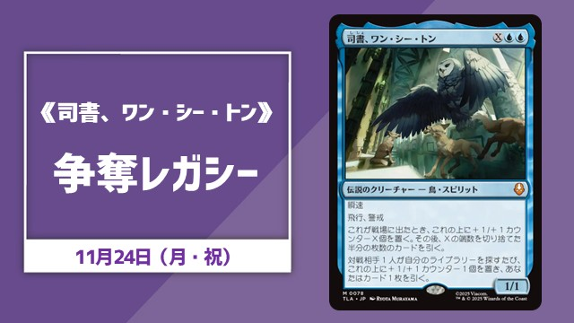 【#晴れ郡イベント】 明日開催注目イベントは、、、 ✨《司書、ワン・シー・トン》争奪戦✨ ✅レガシー:11/24(月)13:00~ サーチ手段が多いモダンや統率者は勿論、スタンダードでも注目されてますね🎵 ぜひこの機会にGETしちゃいましょう‼️ ご参加お待ちしております🙇♂️