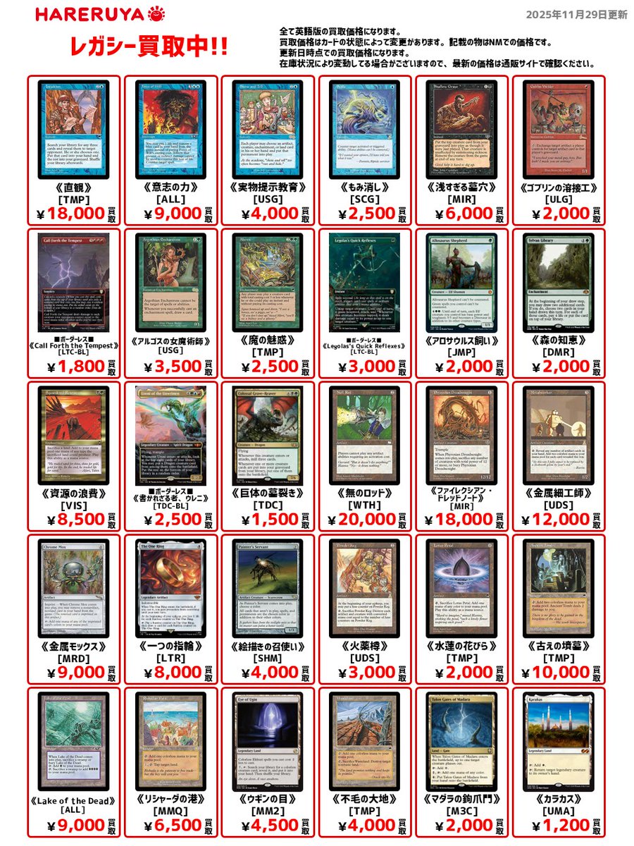 【買取情報】 🏛️レガシー買取募集中🏛️ 🎯英語版の注目価格はこちら🎯 《リシャーダの港》[MMQ] ¥6,500 《実物提示教育》[USG] ¥4,000 《巨体の墓裂き》[TDC] ¥1,500 昔遊んでいたカードがタンスの奥で高くなっているかも👀 皆さまのご来店お待ちしております🙇♀️