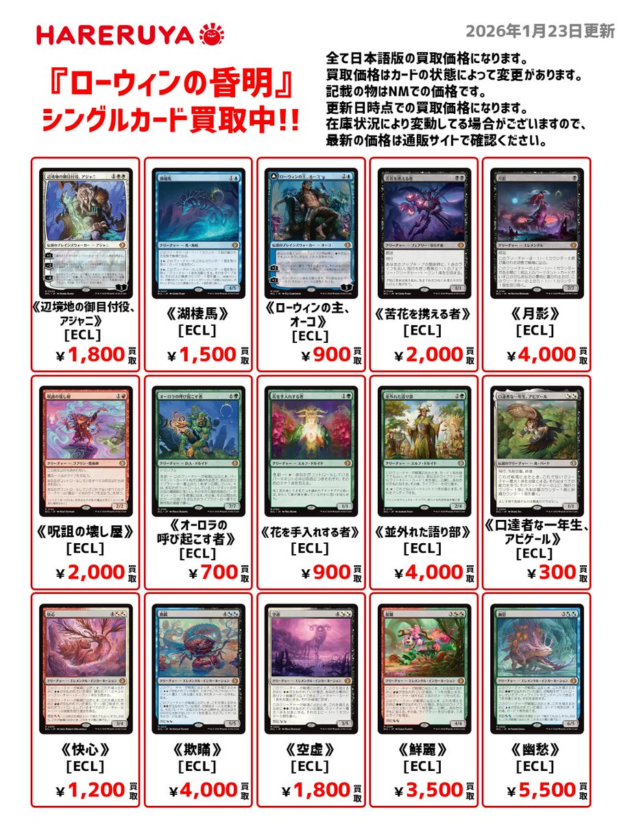 【買取情報】 ☀️『ローウィンの昏明』買取募集中🌙 日本語版の買取価格コチラ‼️ 《月影》 4,000円買取 《並外れた語り部》 4,000円買取 《欺瞞》4,000円買取 《鮮麗》 3,500円買取 《幽愁》 5,500円買取 『新年スタートダッシュ買取キャンペーン』も開催中‼️