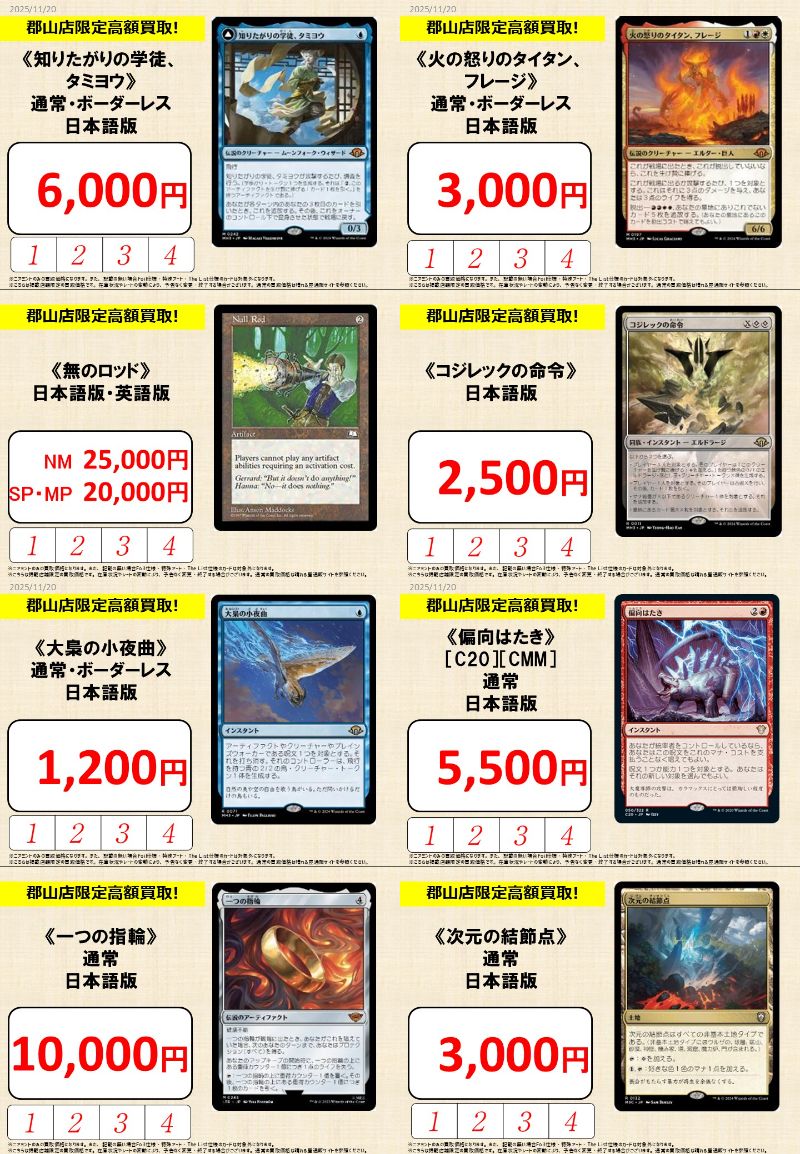【買取情報】 晴れる屋郡山店限定の買取強化実施中🎯 《知りたがりの学徒、タミヨウ》6,000円 《コジレックの命令》2,500円 《大梟の小夜曲》1,200円 《偏向はたき》5,500円 スリーブ抜き&ソート不要🙌 ぜひ晴れる屋郡山店にお持ち込みください🙇♂️