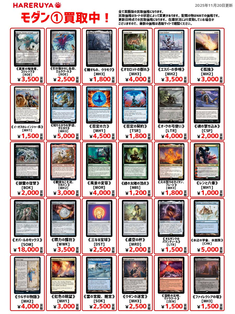 【買取情報】 🔥モダンカード 買取中🔥 《オパールのモックス》[SOM] 18,000円買取 《知りたがりの学徒、タミヨウ》[MH3] 5,000円買取 《水辺の学舎、水面院》[CHK] 5,000円買取 《否定の力》[MH1] 4,500円買取 お持ち込みの際はスリーブ抜き&ソート不要🙌 晴れる屋郡山店にてお待ちしています🙇♂️