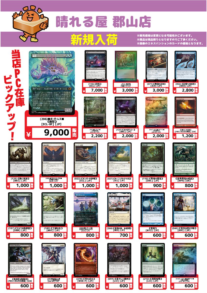 【店舗情報】 おはようございます☀️ 晴れる屋郡山店本日14時オープンです‼️ ✨注目イベント ✅スタンダード・ショーダウン『ローウィンの昏明』 ✅木曜ブースタードラフト 詳細はこちら🔽 🎯注目商品 ✅『ローウィンの昏明』シングルカード