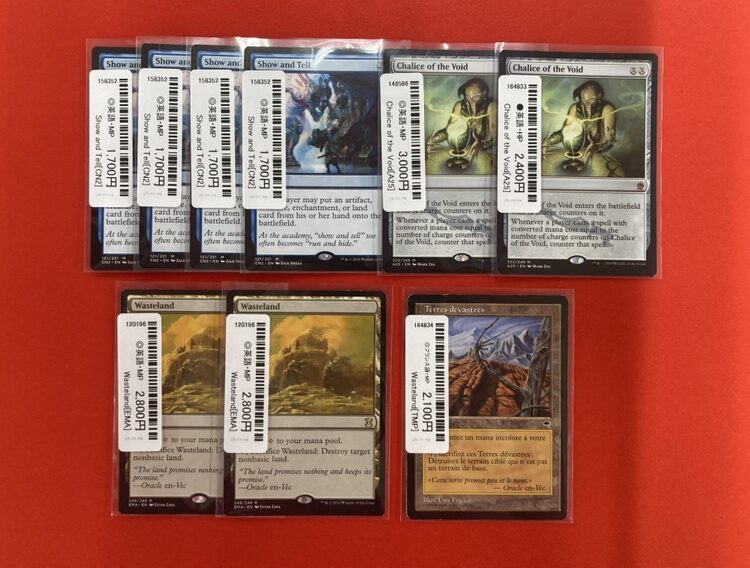 【#晴れ郡商品情報】 ショーケースに新しくカードを追加しました‼️ 今回のオススメは👇 《実物提示教育》EN MP ¥1,700 《虚空の杯》EN HP ¥2,400 《不毛の大地》TMP フランス語 MP ¥2,100 このほかにも多数ショーケースにて展開中🙌 ご来店お待ちしております✨